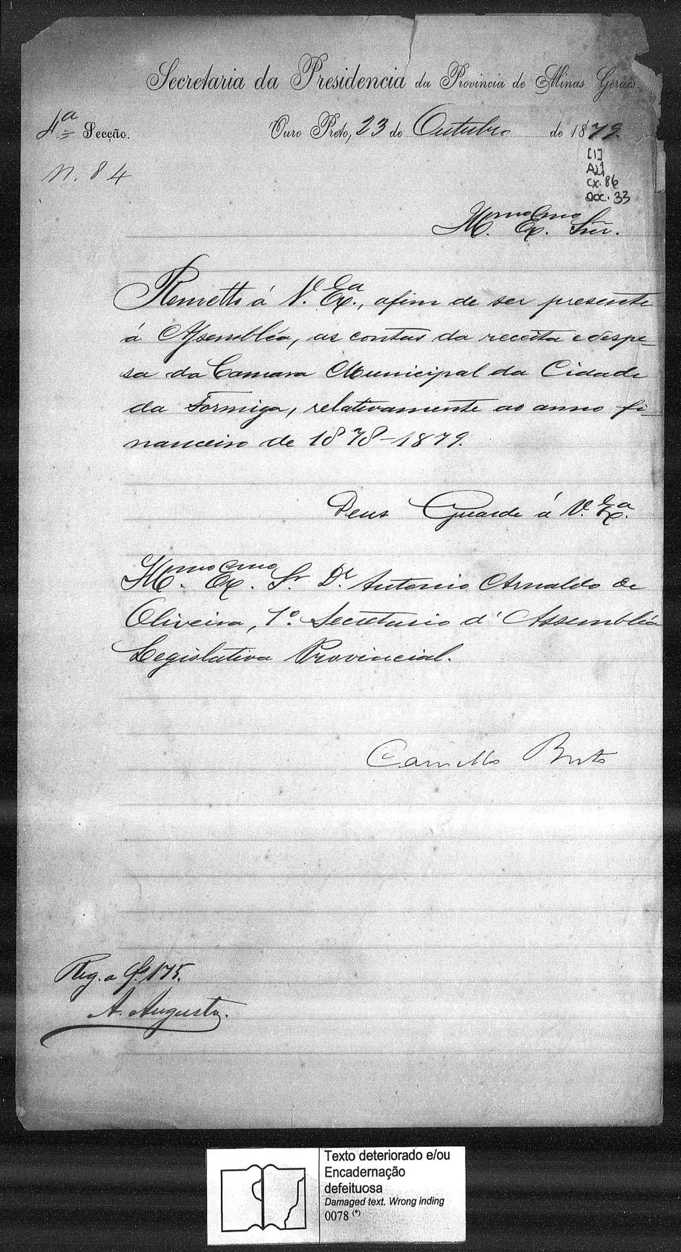 ASSEMBLEIA LEGISLATIVA PROVINCIAL E CONGRESSO MINEIRO