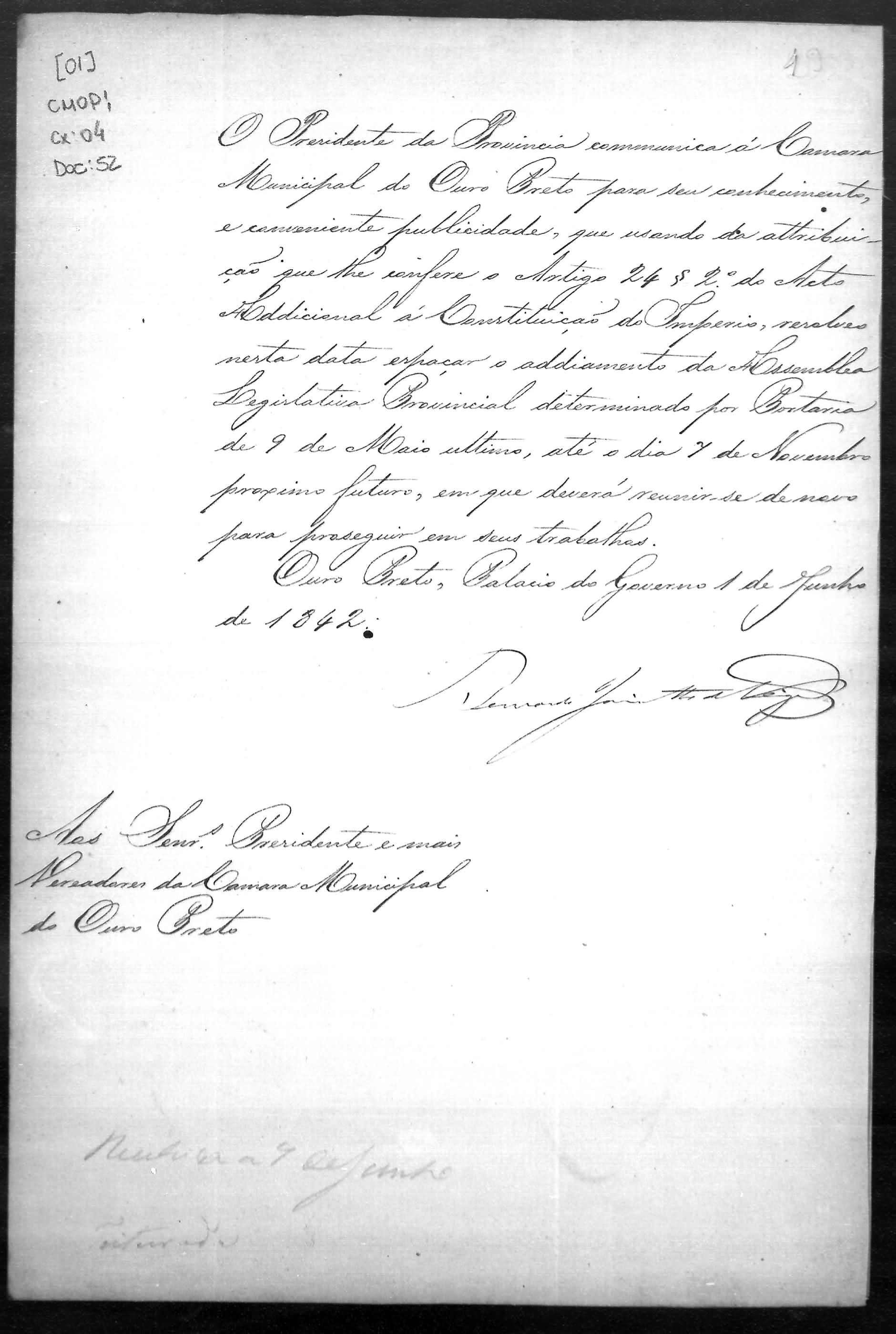 ASSEMBLEIA LEGISLATIVA PROVINCIAL E CONGRESSO MINEIRO