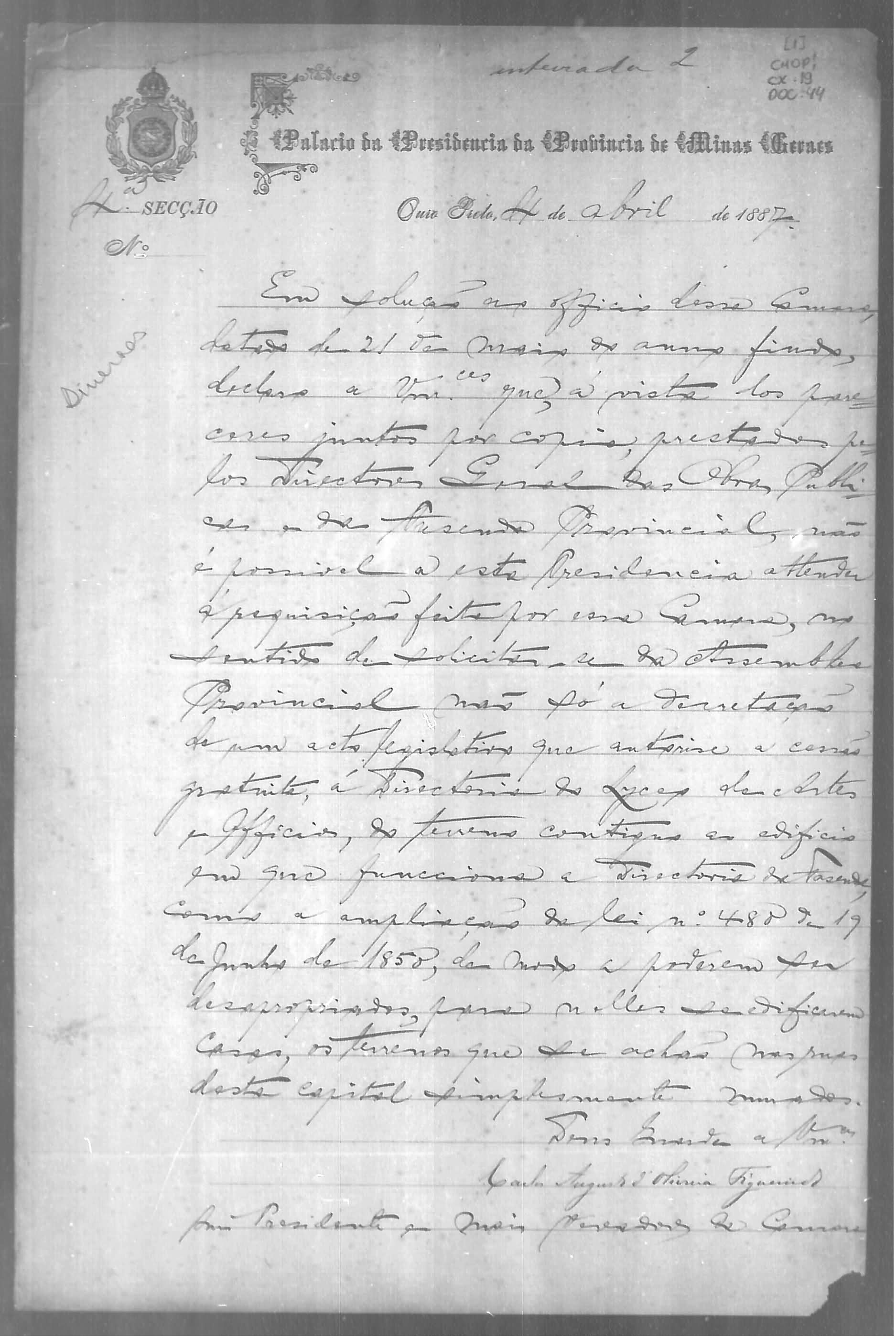 ASSEMBLEIA LEGISLATIVA PROVINCIAL E CONGRESSO MINEIRO