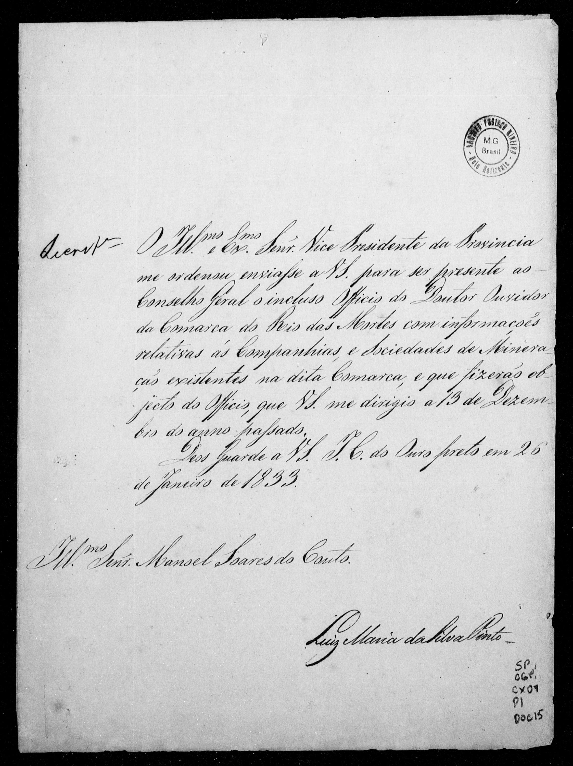 ASSEMBLEIA LEGISLATIVA PROVINCIAL E CONGRESSO MINEIRO