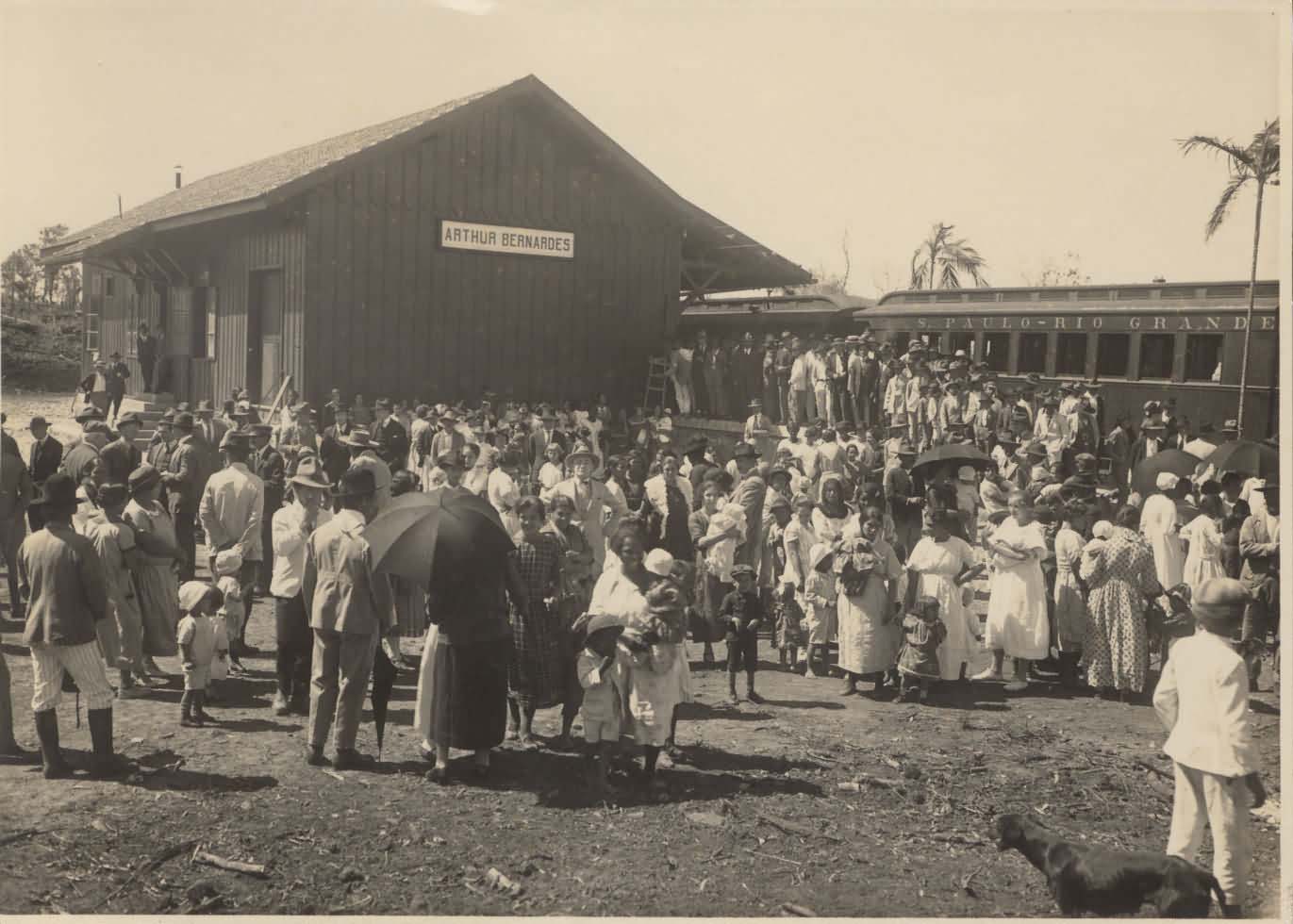 AUTORIDADES E POPULARES NA ESTAO FERROVIRIA ARTHUR BERNARDES DURANTE A INAUGURAO