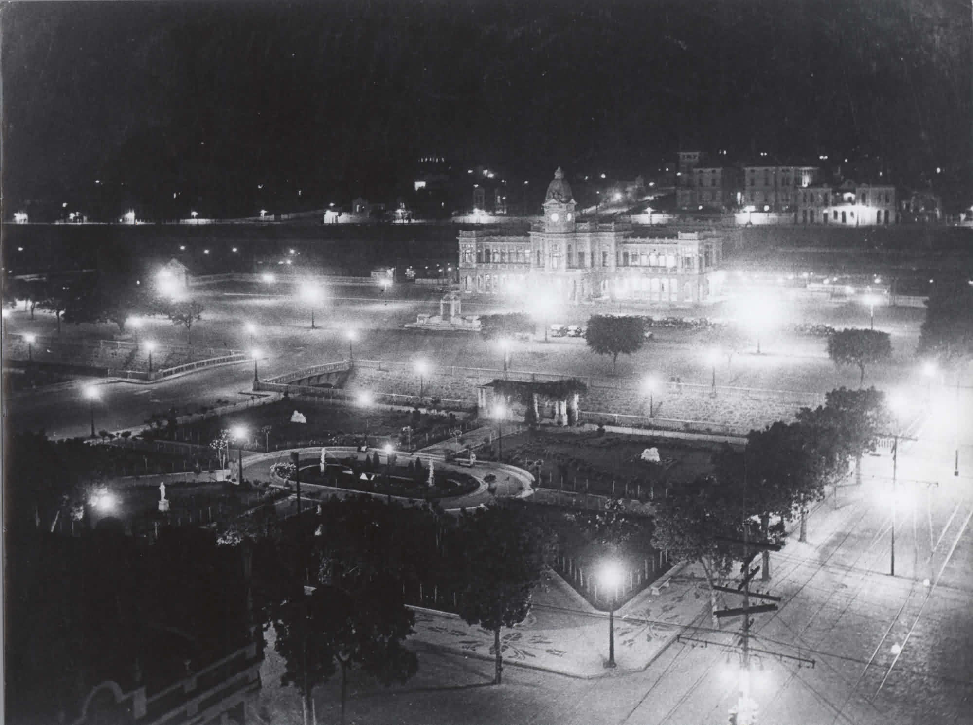 VISTA NOTURNA DA PRAA RUI BARBOSA COM O PRDIO DA ESTAO FERROVIRIA CENTRAL DO BRASIL EM BELO HORIZONTE (MG)