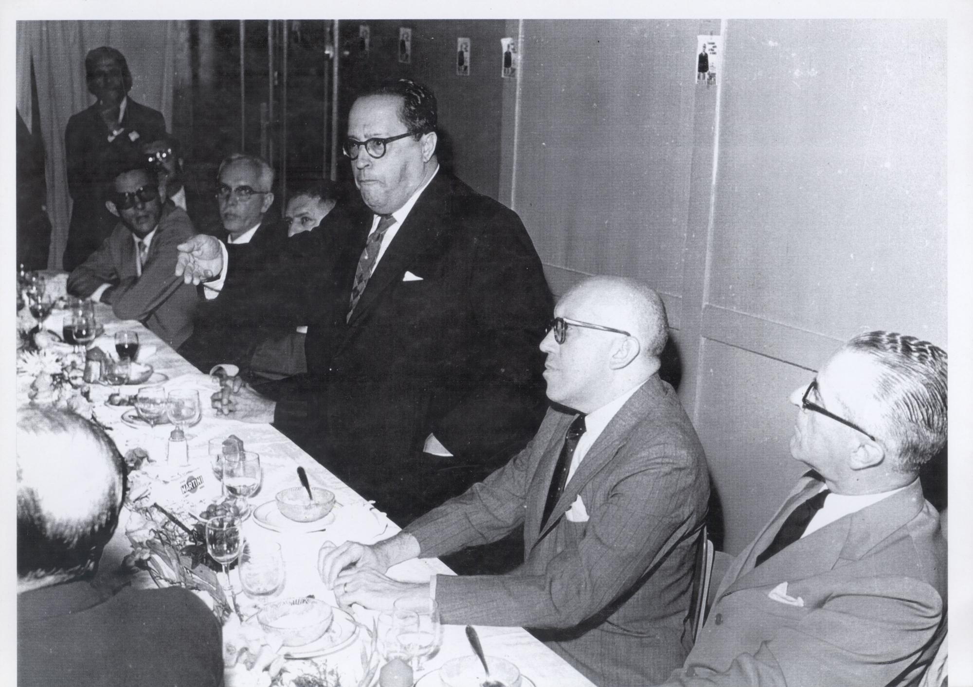 PEDRO ALEIXO, DISCURSANDO. AO LADO MAGALHES PINTO E OUTROS