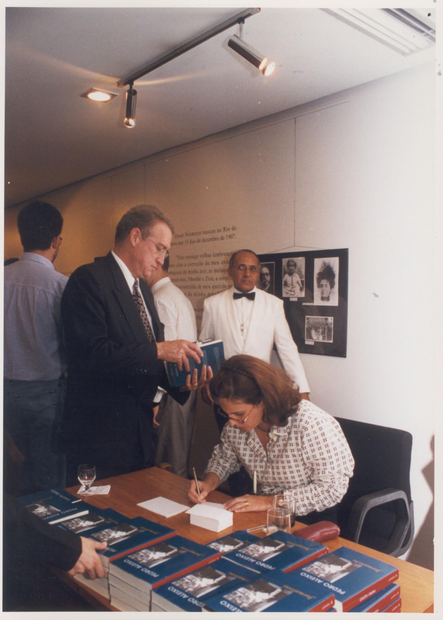 =>SENHORA MESA , ESCREVENDO. SENHORES DE P. TODOS NO IDENTIFICADOS. LANAMENTO DO LIVRO "PEDRO ALEIXO -JORNALISTA. ESPAO CULTURAL DA CMARA DOS DEPUTADOS.EXEMPLARES DO LIVRO SOBRE A MESA |
