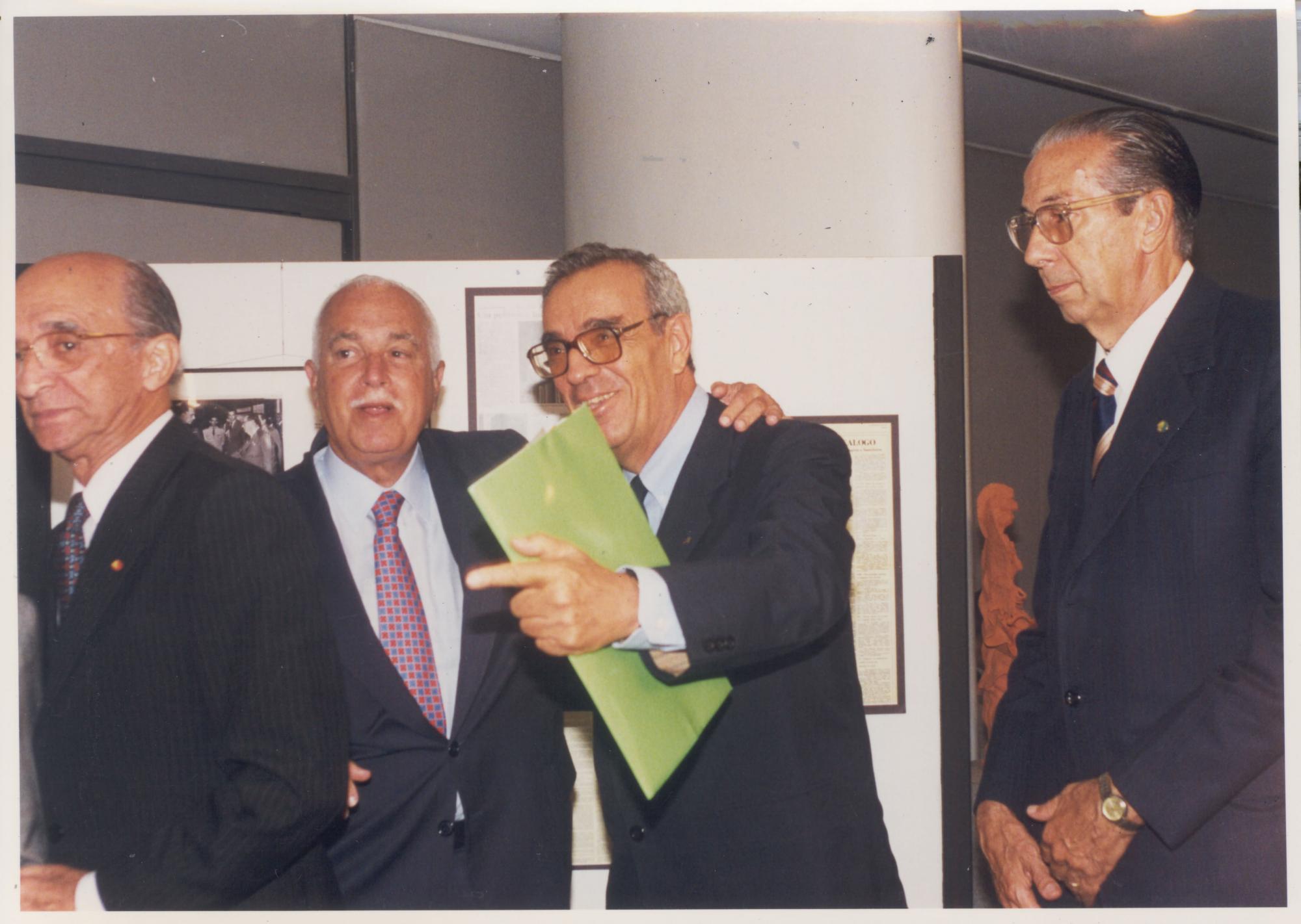 =>CEL. AFFONSO HELIODORO, SENADOR ANTONIO CARLOS MAGALHES, JOS CARLOS BRANDI ALEIXO E DEPUTADO RAUL BERNARDO, NO LANAMENTO DO LIVRO PEDRO ALEIXO- JORNALISTA. ESPAO CULTURAL DA CMARA DOS DEPUTADOS. |