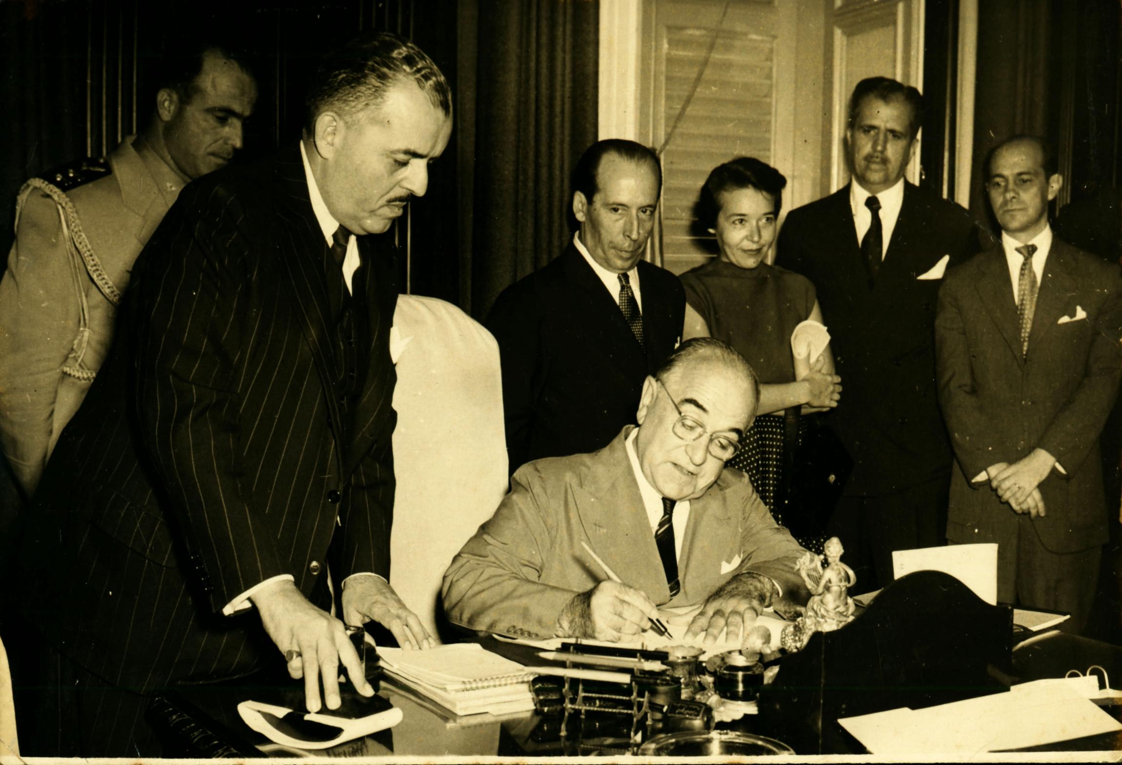 | Descrio:: | PRESIDENTE DA REPBLICA GETLIO VARGAS, ASSINANDO CONTRATO DE RESCISO DE ARRENDAMENTO DA REDE MINEIRA DE VIAO: JOS MARIA ALCKMIN, TERCEIRO DA ESQUERDA PARA A DIREITA, E TANCREDO DE ALMEIDA NEVES, PRIMEIRO DIREITA. |