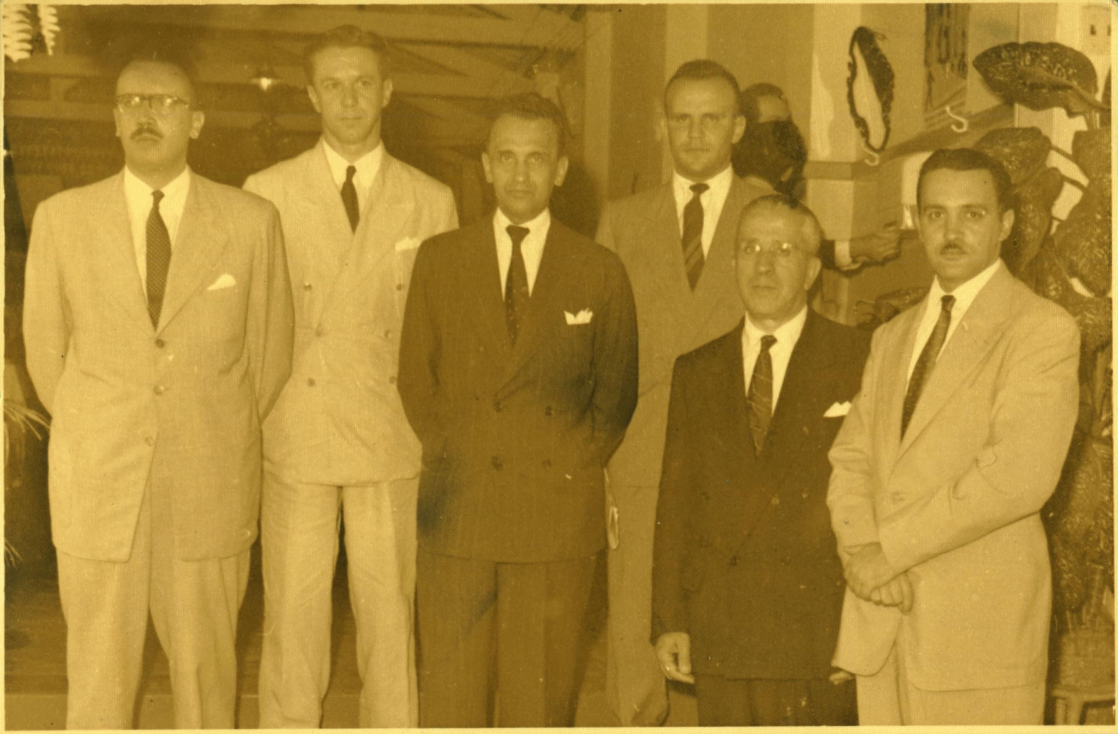 "DA ESQUERDA PARA A DIREITA: CARLOS ANTNIO [TILFUEZAR?] - OSCAR PIRES - DERMEVAL PIMENTA - NESTOR ROCHA - ANTONIO OLINTO ALVES E WALTER MENDONA."