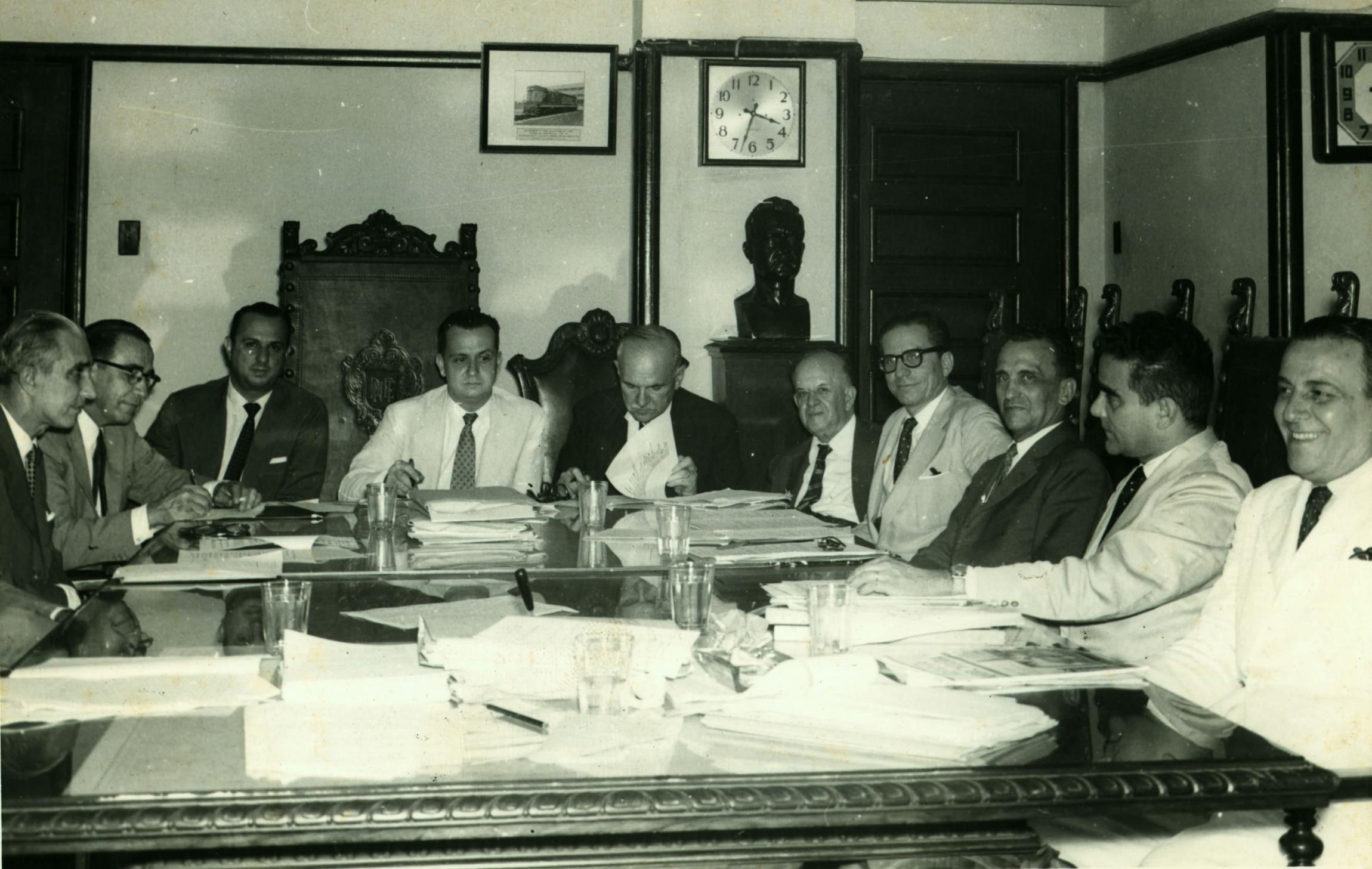 | Descrio:: | DERMEVAL JOS PIMENTA, OITAVO DA ESQUERDA PARA A DIREITA EM REUNIO DA COMISSO ORGANIZADORA DO 10 CONGRESSO PANAMERICANO DE ESTRADAS DE FERRO. |