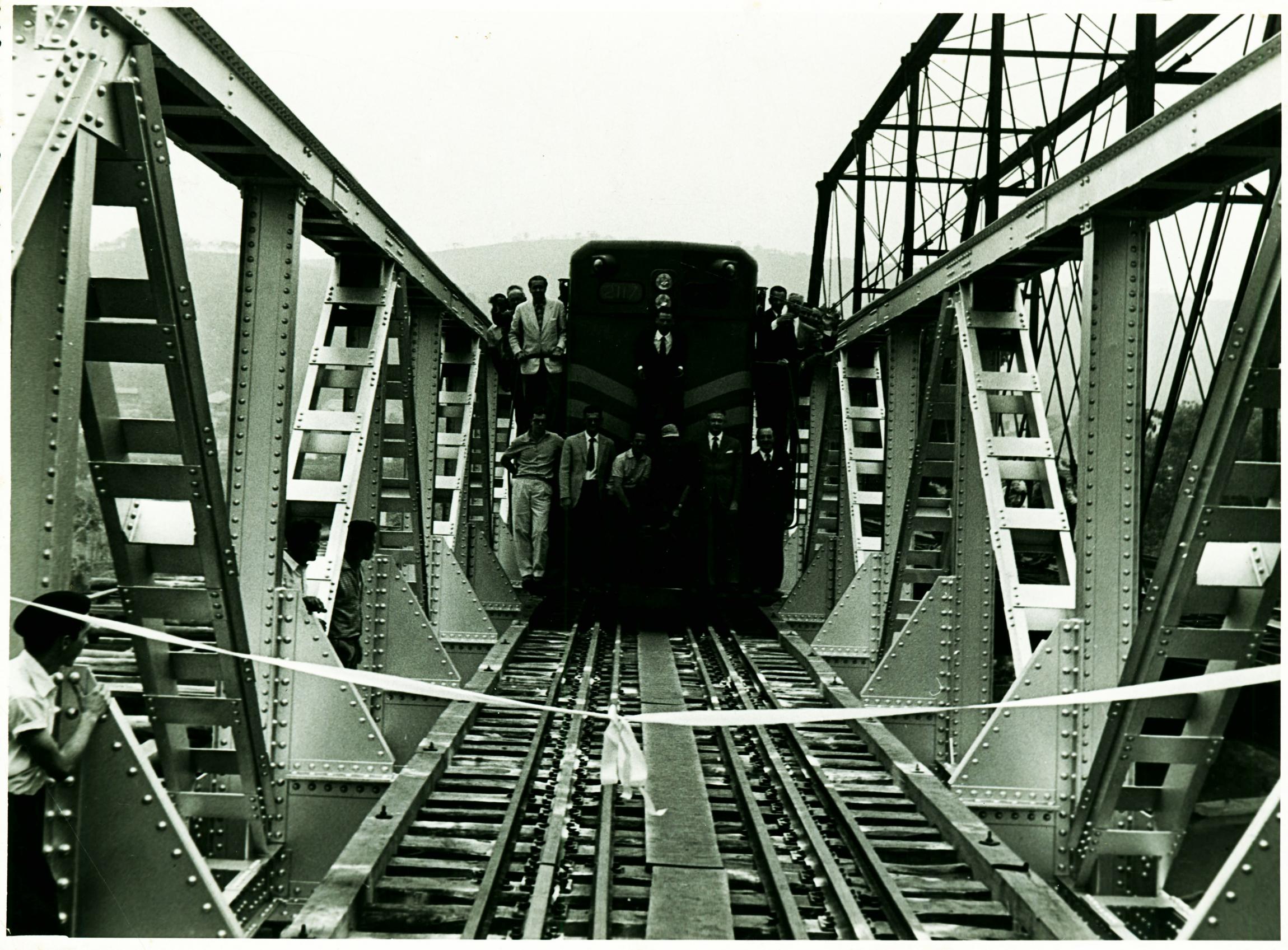 | Descrio:: | INAUGURAO DE PONTE SOBRE O RIO VERDE: DERMEVAL JOS PIMENTA, DIREITA, NA PARTE SUPERIOR DA LOCOMOTIVA. |