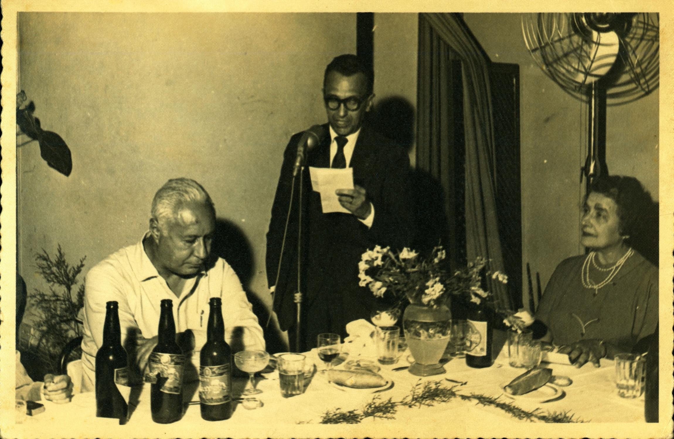 | Notas: | "O ENGENHEIRO DERMEVAL PIMENTA, ENTO DIRETOR DA EX - REDE MINEIRA DE VIAO, DISCURSANDO DIA 4 DE SETEMBRO DE 1959 POR OCASIO DA INAUGURAO DA NOVA PONTE SOBRE O RIO VERDE, EM TRS CORAES. O TEMPO DA TROCA DE UMA PONTE AL COLOCADA EM 1892 PELA ENTO E.F. MUZAMBINHO QUE VINHA DE TUYUTY E FOI ANEXADA MINAS E RIO, FOI APENAS DE 10 MINUTOS! - AO SEU LADO EST O ENG. MACHADO DA COSTA, FILHO DO CONSTRUTOR DA PONTE ANTERIOR. - O DR. DERMEVAL PIMENTA FOI UM GRANDE PROTETOR DE MEU IRMO VICENTE VALLADO NOMEANDO-O PARA CARGOS DE CHEFIA E DE SUA CONFIANA. EM SUA AGONIA RELEMBRAVA, DELIRANDO, AS VIAGENS A LOCAIS DIVERSOS OS NOMES DE PESSOAS DA COMITIVA EM INSPEO"