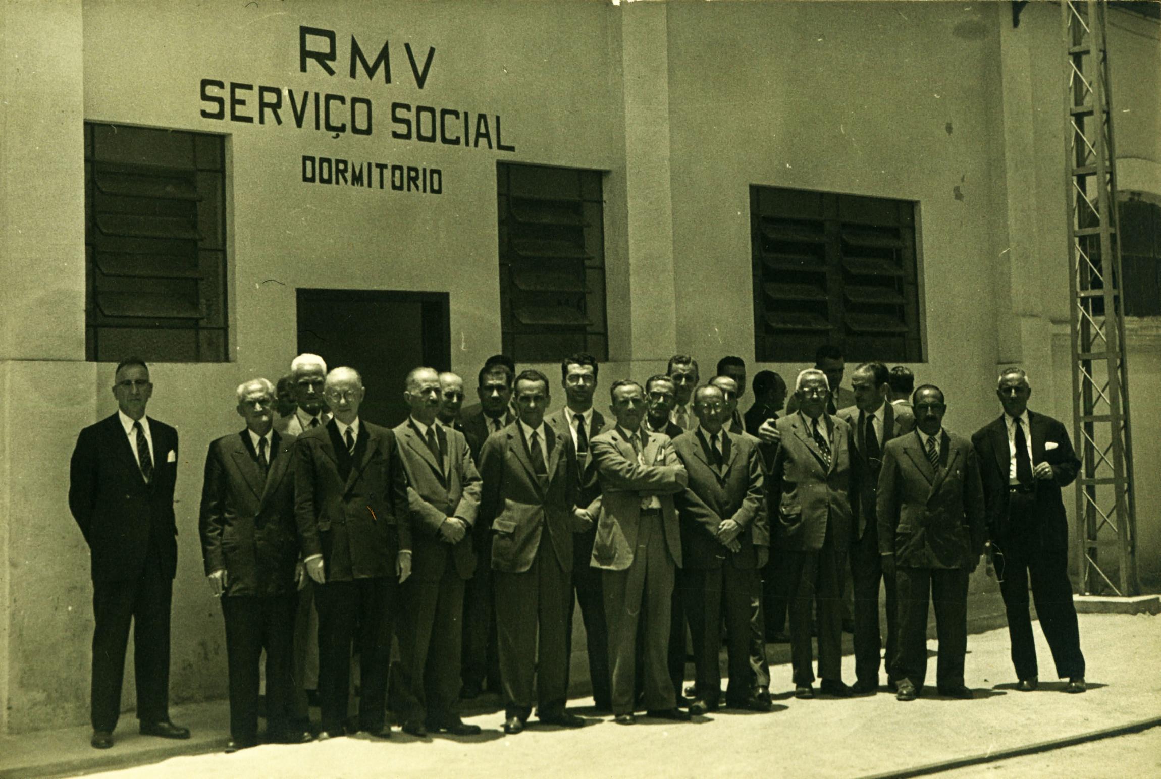 DERMEVAL JOS PIMENTA E OUTROS EM FRENTE S INSTALAES DO DORMITRIO DA SEDE DO SERVIO SOCIAL