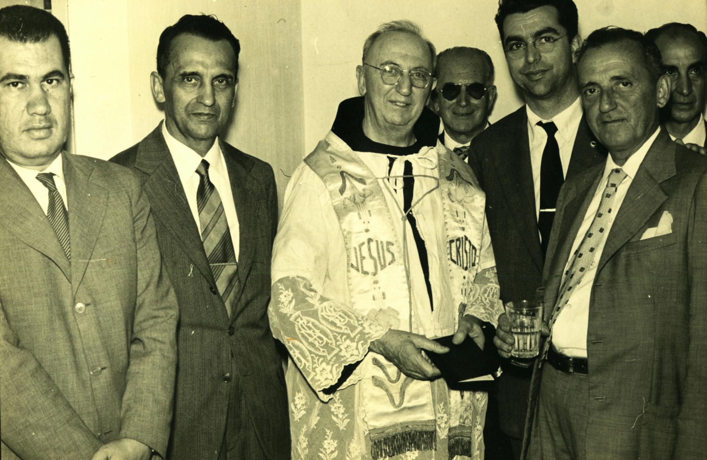 | Descrio:: | HLIO MARTINS DA SILVA, PRIMEIRO DA ESQUERDA PARA A DIREITA E, AO SEU LADO, DERMEVAL JOS PIMENTA, FREI ZACARIAS, WALDEMAR MACHADO, AO FUNDO, ROBERTO CARNEIRO, ANTNIO RIVERA E PAULO AQUINO VIEIRA. |