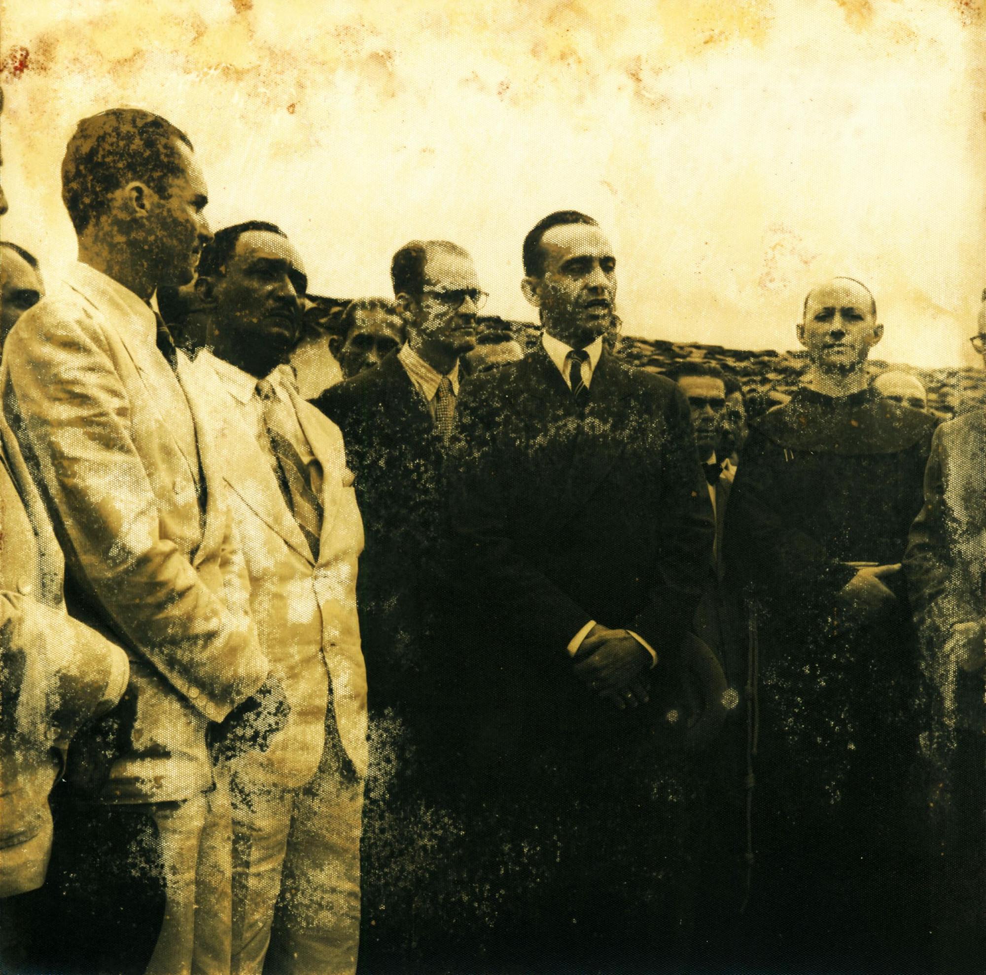 | Descrio:: | PESSOAS REUNIDAS DURANTE RECEPO COMITIVA DA SECRETARIA DE VIAO E OBRAS PBLICAS: DERMEVAL JOS PIMENTA, AO CENTRO, DE TERNO ESCURO. |