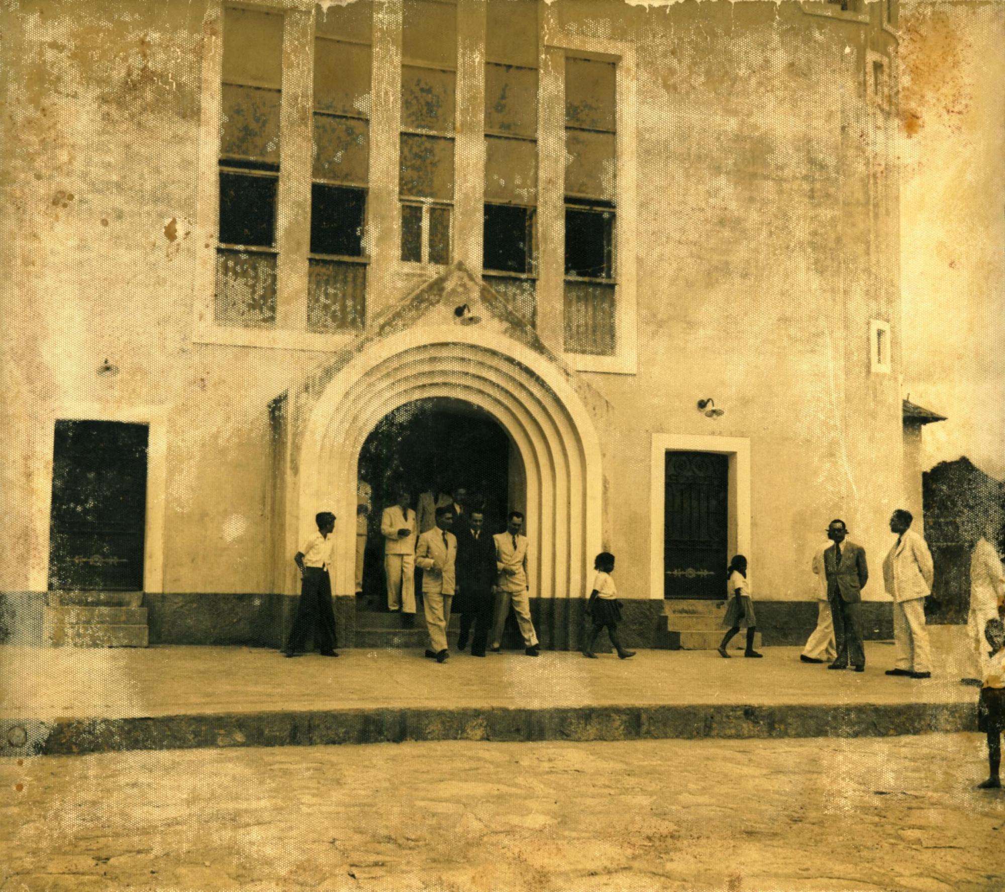 | Descrio:: | DERMEVAL JOS PIMENTA, FRENTE, DE TERNO ESCURO SAINDO DA IGREJA MATRIZ DE SO MIGUEL. |