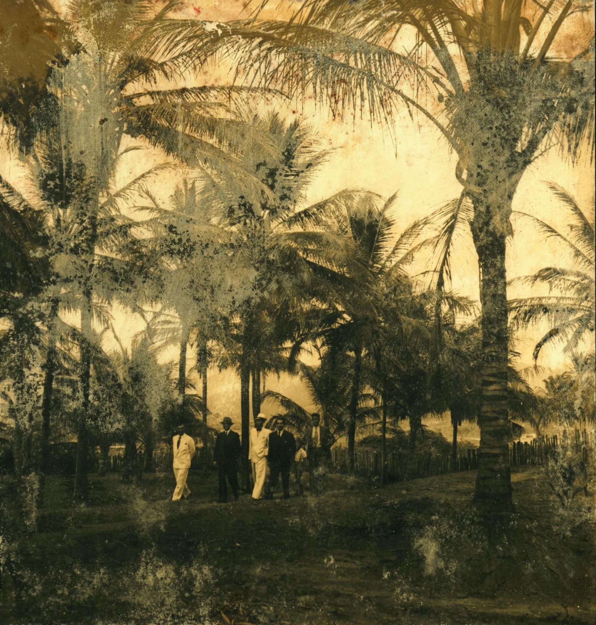 | Descrio:: | DERMEVAL JOS PIMENTA, DE TERNO ESCURO E CHAPU, ENTRE OUTROS CAMINHANDO POR UM COQUEIRAL. |