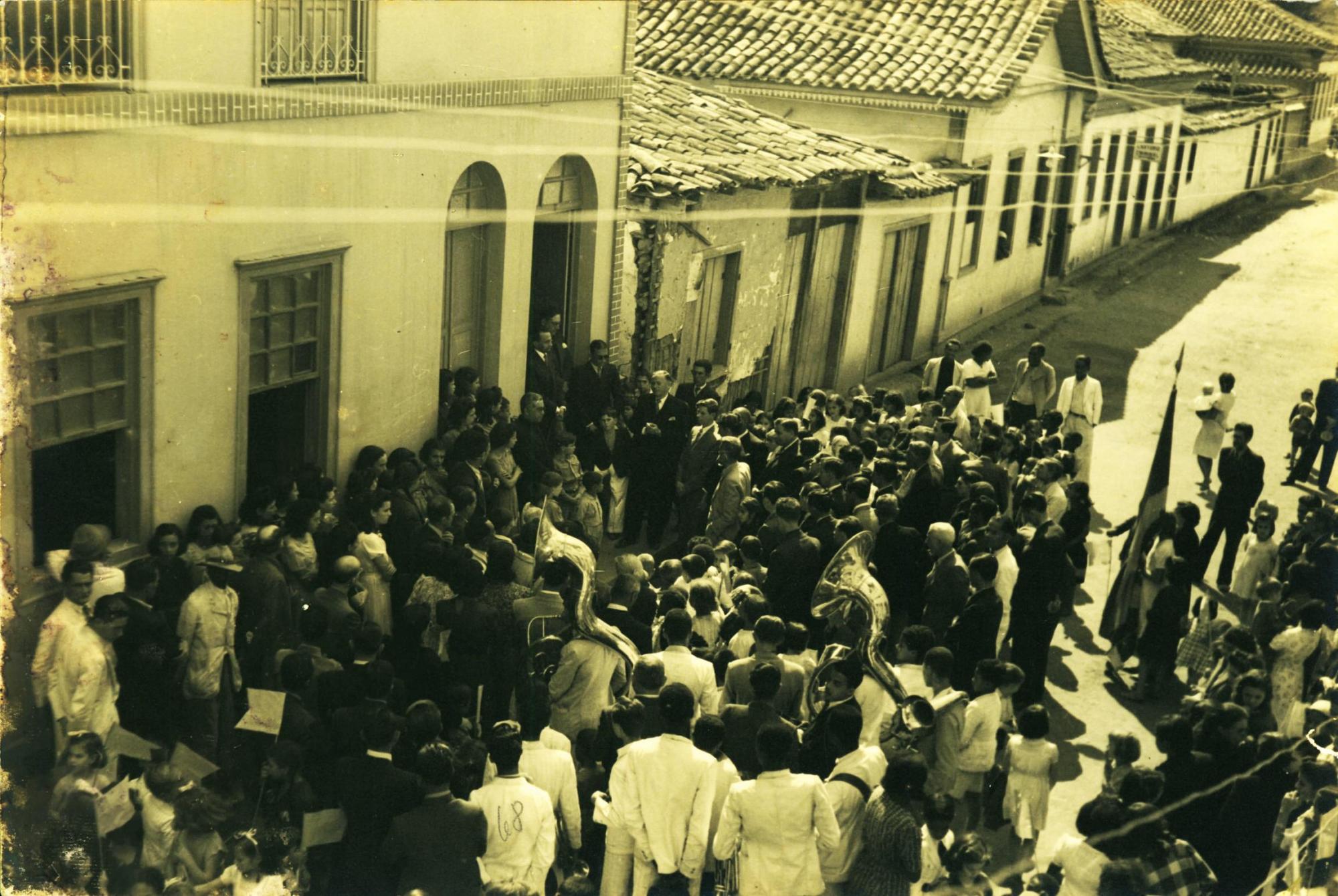 | Descrio:: | PESSOAS REUNIDAS EM FRENTE A UMA EDIFICAO: DERMEVAL JOS PIMENTA, PARADO, ESQUERDA, PRXIMO PORTA. |