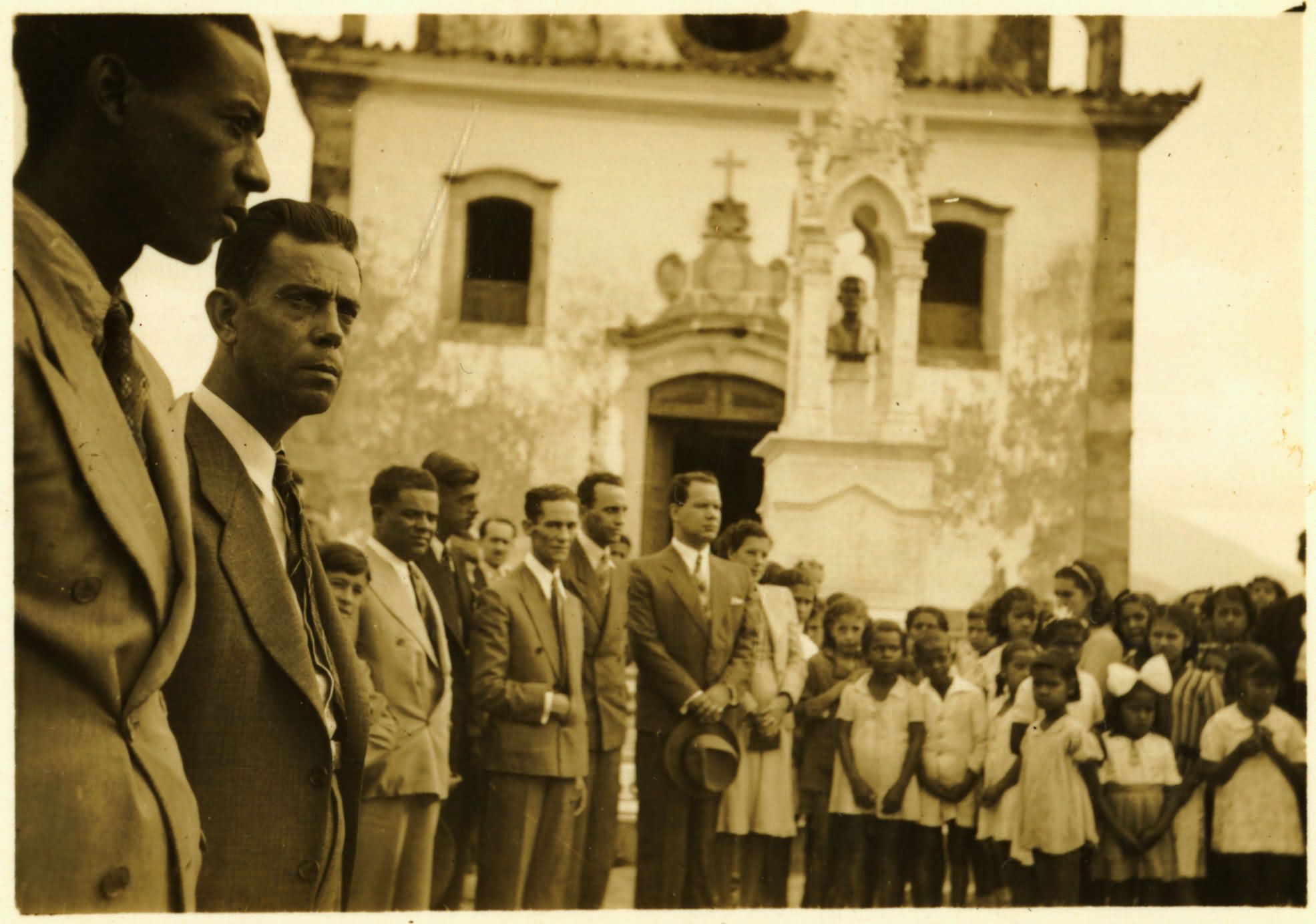 DERMEVAL JOS PIMENTA, STIMO DA ESQUERDA PARA A DIREITA EM FRENTE A UMA IGREJA