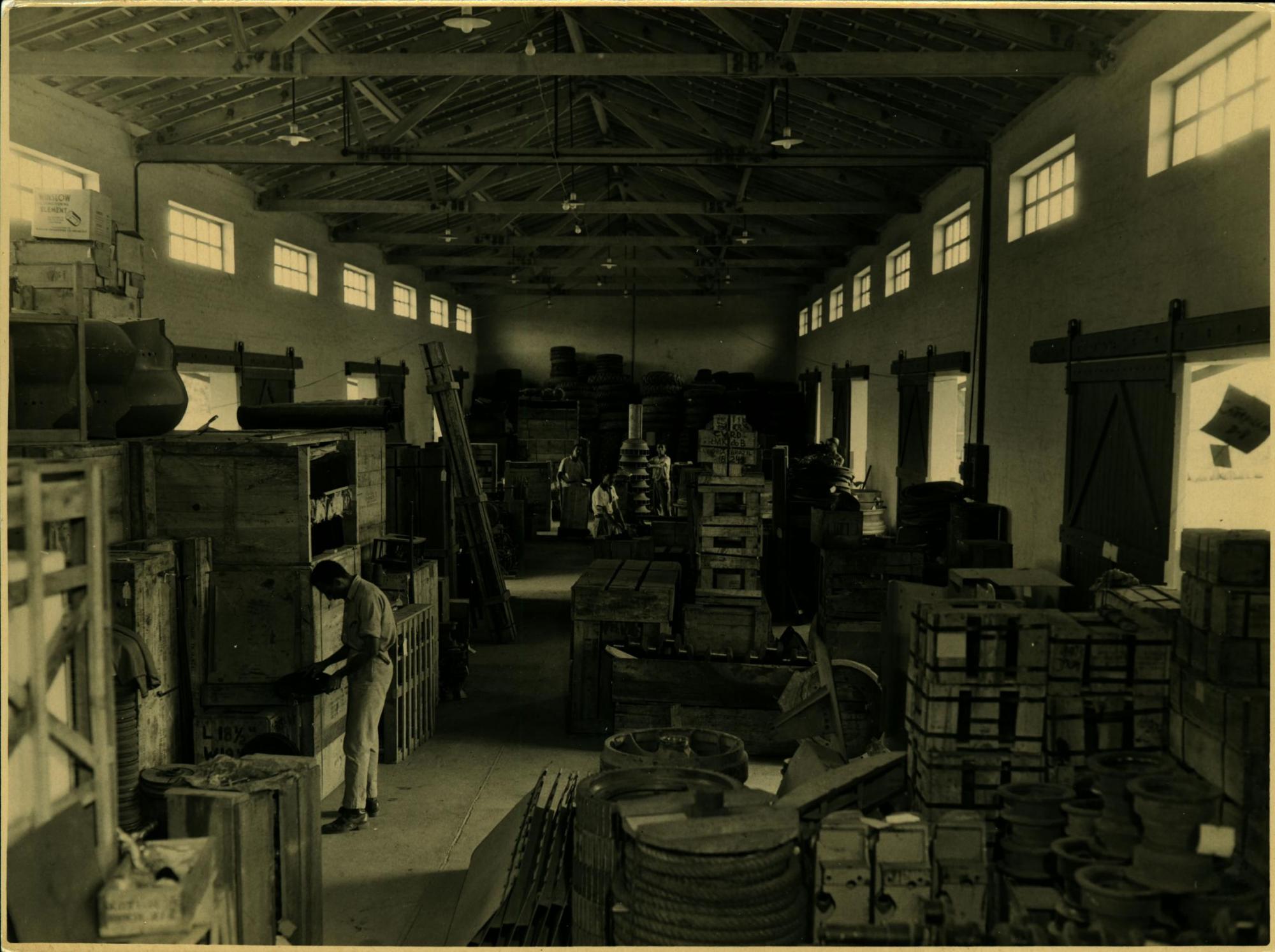 | Descrio:: | FUNCIONRIOS TRABALHANDO NUM GALPO PARA ARMAZENAMENTO DE PEAS. |
