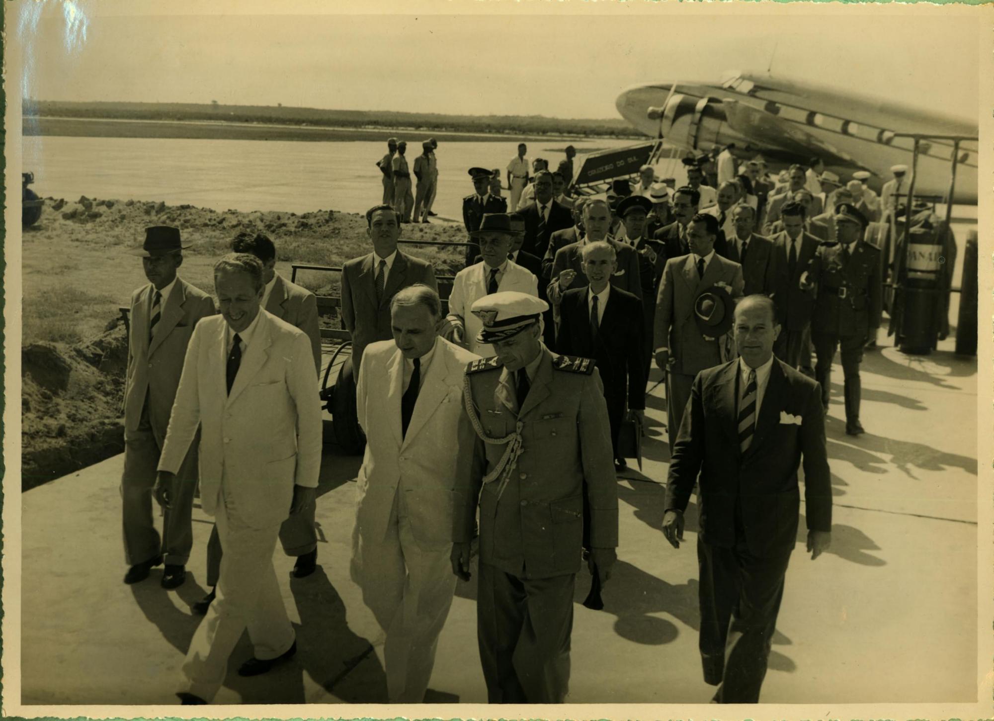 | Descrio:: | O DEPUTADO ISRAEL PINHEIRO, PRIMEIRO DA ESQUERDA PARA A DIREITA, FRENTE E DE TERNO CLARO, O INTERVENTOR DO ESTADO DO ESPRITO SANTO, MOACYR UBIRAJARA E O REPRESENTANTE DO PRESIDENTE DA REPBLICA, TENENTE CORONEL GABRIEL GRN MOSS; DERMEVAL JOS PIMENTA APARECE, AO FUNDO, DIREITA, SEGURANDO UM CHAPU. |