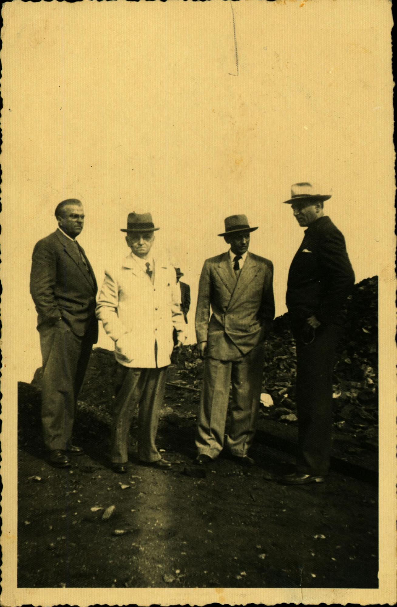 "1948 - PRESIDENTE DA VALE DERMEVAL PIMENTA, SENADOR H. NOVAIS (E.S.) - DEPUTADO MANOEL NOVAIS ([ILEGVEL]) - NO PICO DO CAU -1948" (VERSO)