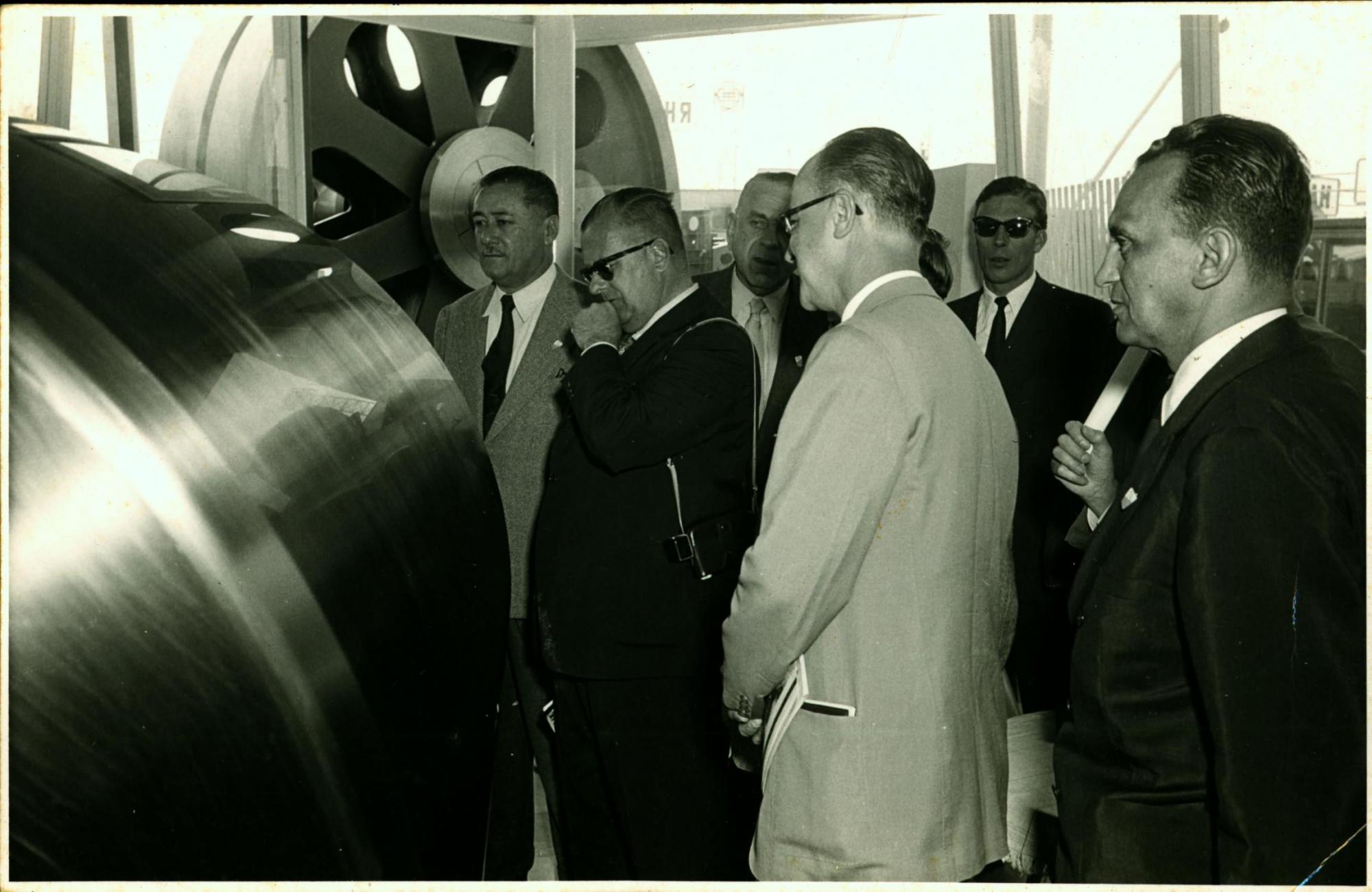 | Descrio:: | VISITA DA DELEGAO BRASILEIRA HANOMAG, EM HANNOVER: DA ESQUERDA PARA A DIREITA, LDIO LUNARDI, HEBHERARD BACKMAM, DE CULOS ESCUROS, FRITZ REPPCHEN, AO FUNDO; JOO KUBITSCHEK DE FIGUEIREDO, DE TERNO CLARO, E DERMEVAL JOS PIMENTA, DIREITA, EM PRIMEIRO PLANO. |