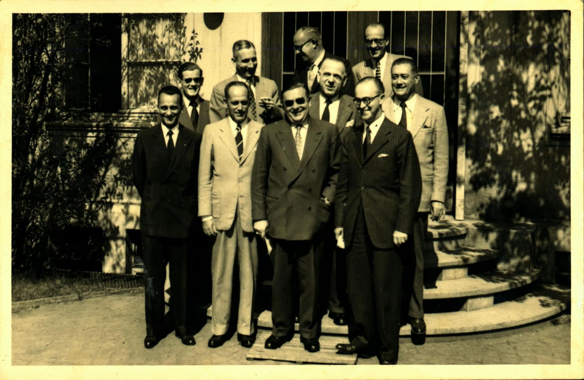 | Descrio:: | VISITA DA DELEGAO BRASILEIRA WESERHUTTE, EM BAD OEYNHAUSSEN: NA PRIMEIRA FILA, DA ESQUERDA PARA A DIREITA, DERMEVAL JOS PIMENTA, PRIMEIRO, PAULO MACEDO GONTIJO, SEGUNDO, E JOO KUBITSCHEK DE FIGUEIREDO, QUARTO; NA SEGUNDA FILA, LDIO LUNARDI, PRIMEIRO DIREITA. |
