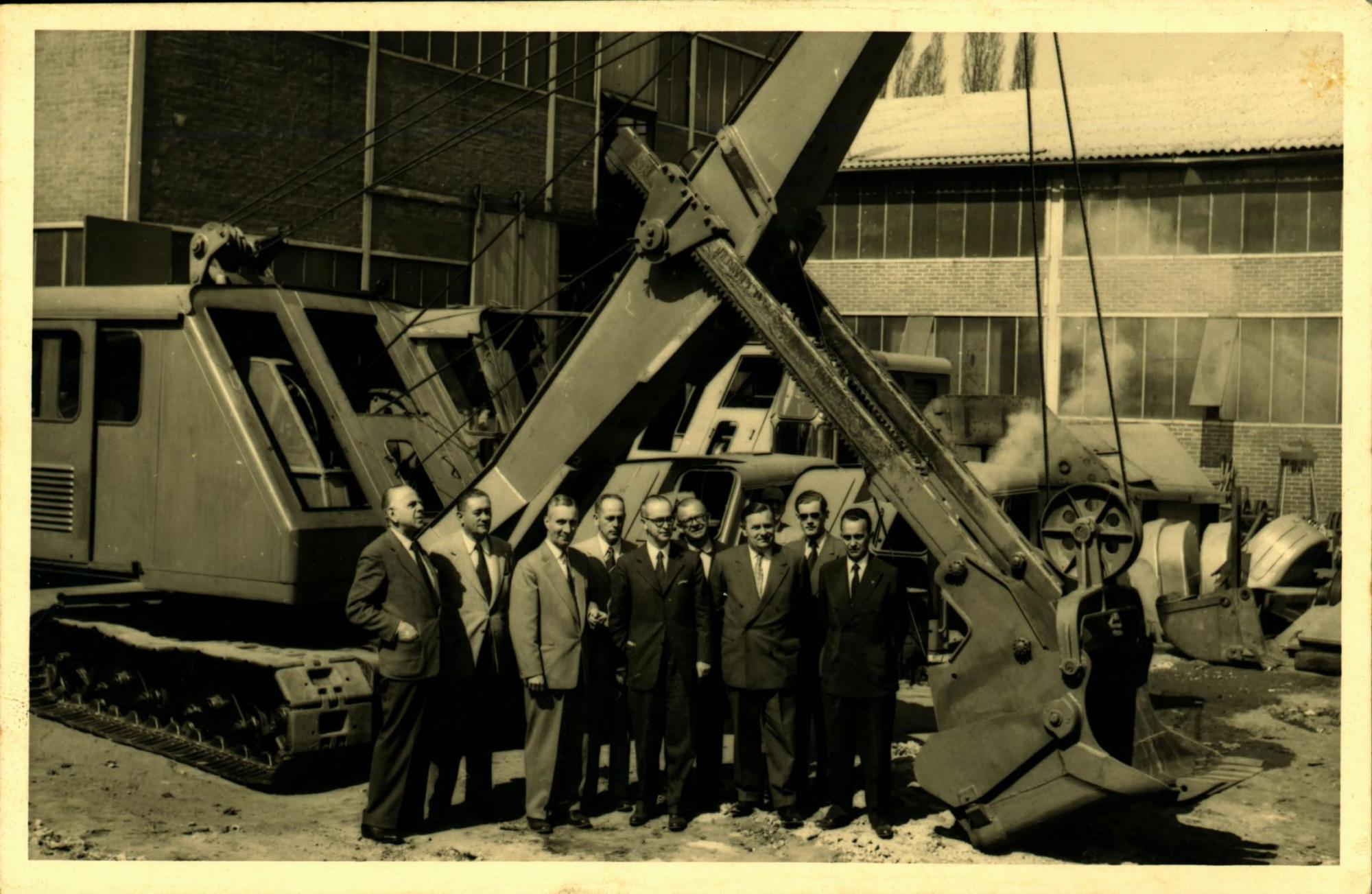 | Descrio:: | FRITZ REPPCHEN, PRIMEIRO DA ESQUERDA PARA A DIREITA, LDIO LUNARDI, SEGUNDO, PAULO MACEDO GONTIJO, QUARTO, JOO KUBITSCHEK DE FIGUEIREDO, QUINTO, E DERMEVAL JOS PIMENTA, NONO PRXIMOS A UMA ESCAVADEIRA DURANTE VISITA DA DELEGAO BRASILEIRA WESERHUTTE, EM BAD OEYNHAUSSEN. |