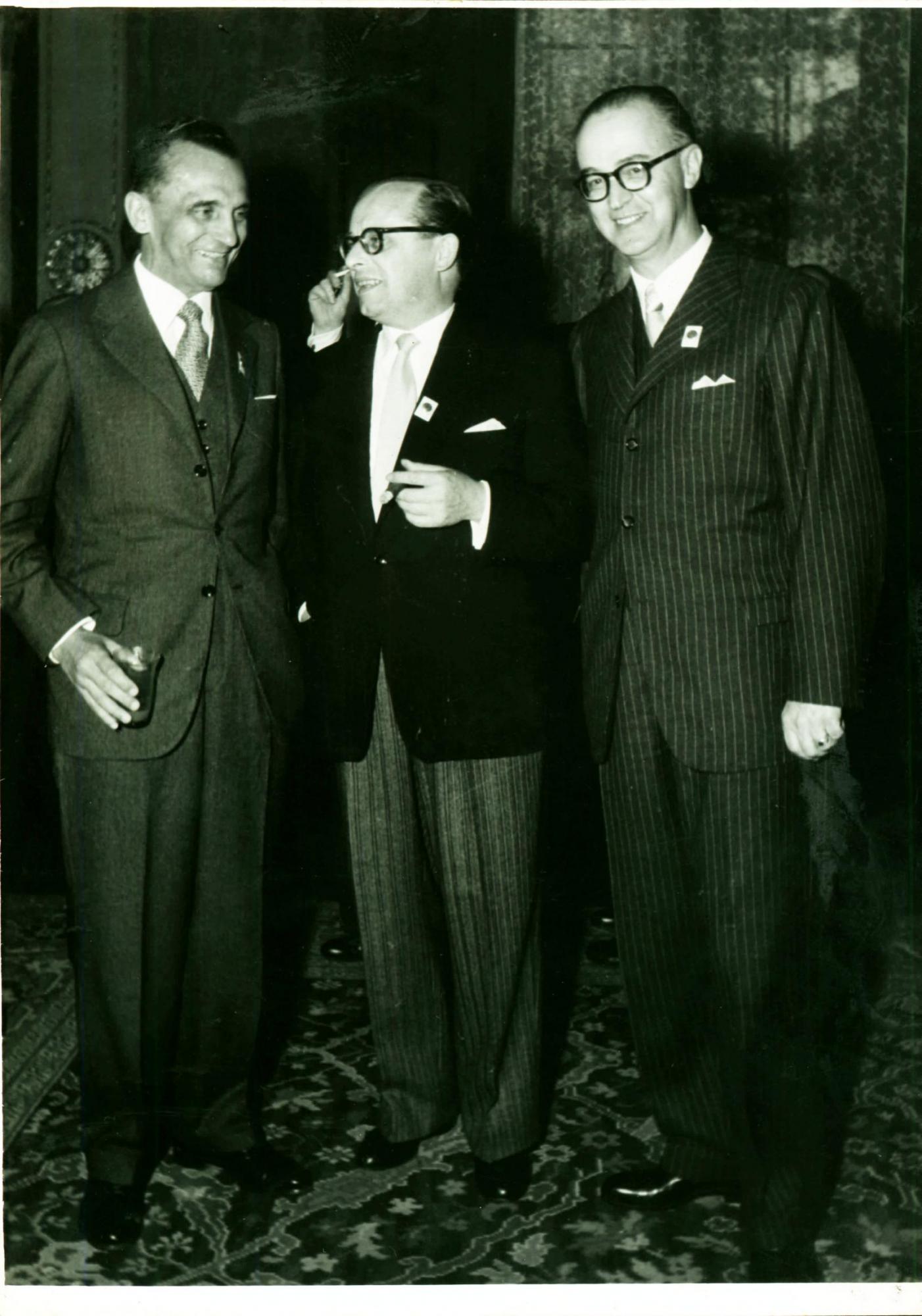 | Descrio:: | DERMEVAL JOS PIMENTA, ESQUERDA, E JOO KUBITSCHEK DE FIGUEIREDO, DIREITA, ACOMPANHADOS DE UM HOMEM NO IDENTIFICADO DURANTE RECEPO DELEGAO BRASILEIRA NO HOTEL GEHRHUS, EM BERLIM. |