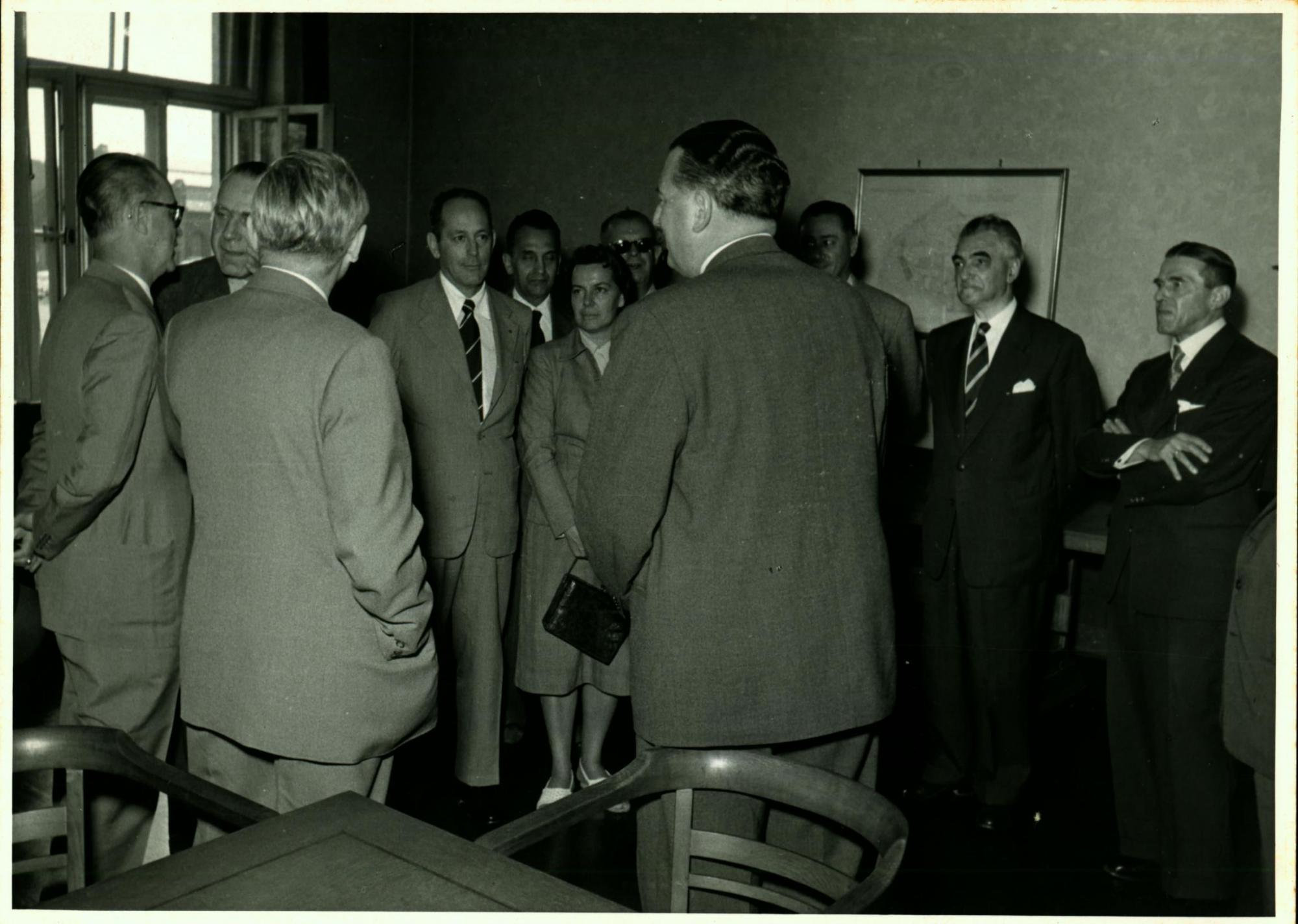 | Descrio:: | DELEGAO BRASILEIRA EM VISITA S INSTALAES DE UMA INDSTRIA EM DSSELDORF: DA ESQUERDA PARA A DIREITA, JOO KUBITSCHEK DE FIGUEIREDO, DE CULOS E MOS PARA TRS, FRITZ REPPCHEN, PAULO MACEDO GONTIJO; AO FUNDO, DERMEVAL JOS PIMENTA, HEBHERARD BACKMAM E LDIO LUNARDI. |