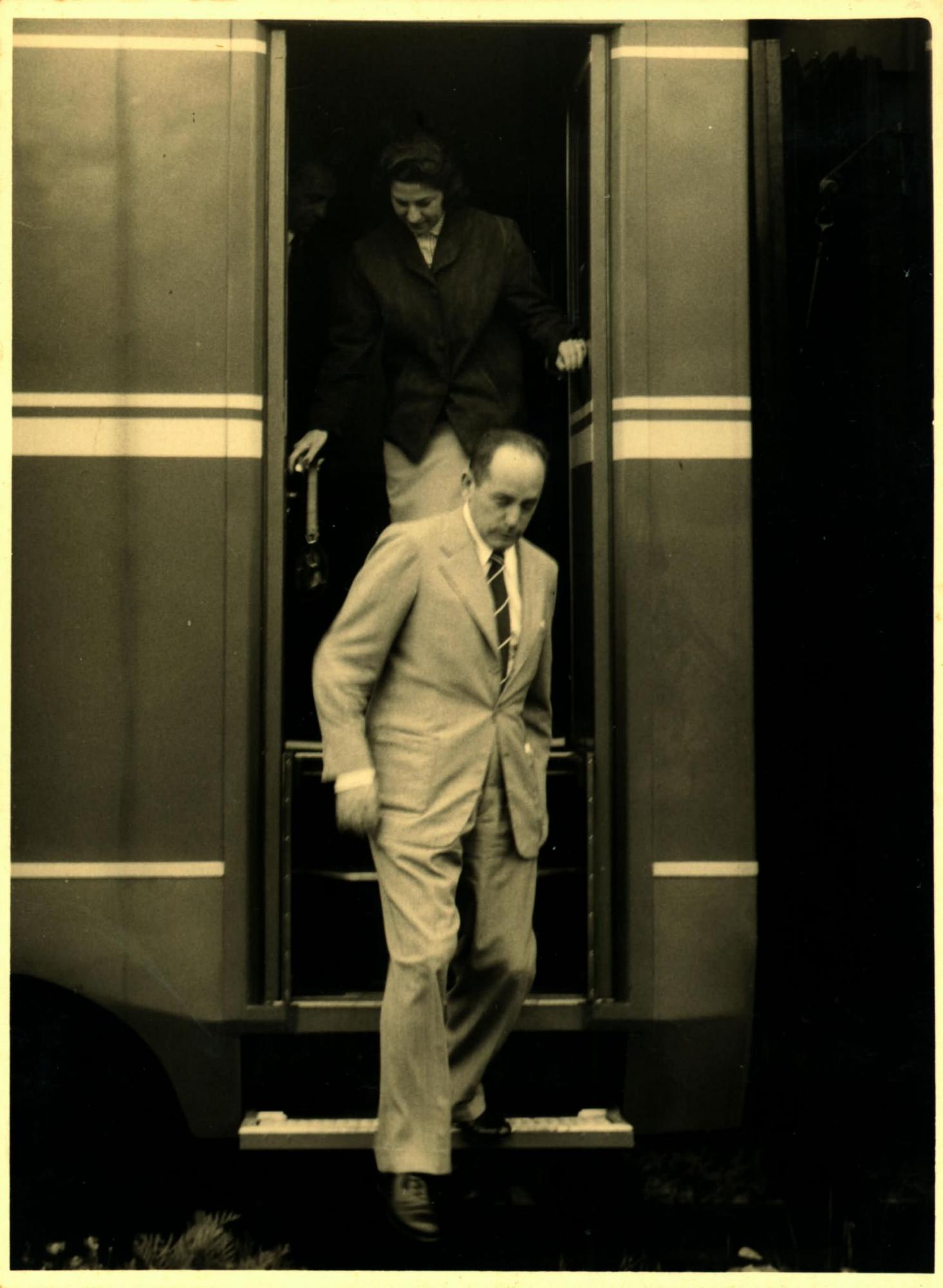 | Descrio:: | PAULO MACEDO GONTIJO E UMA MULHER NO IDENTIFICADA DESCENDO AS ESCADAS DE UM VAGO DURANTE VISITA DA DELEGAO BRASILEIRA A UMA FBRICA DE LOCOMOTIVAS. |