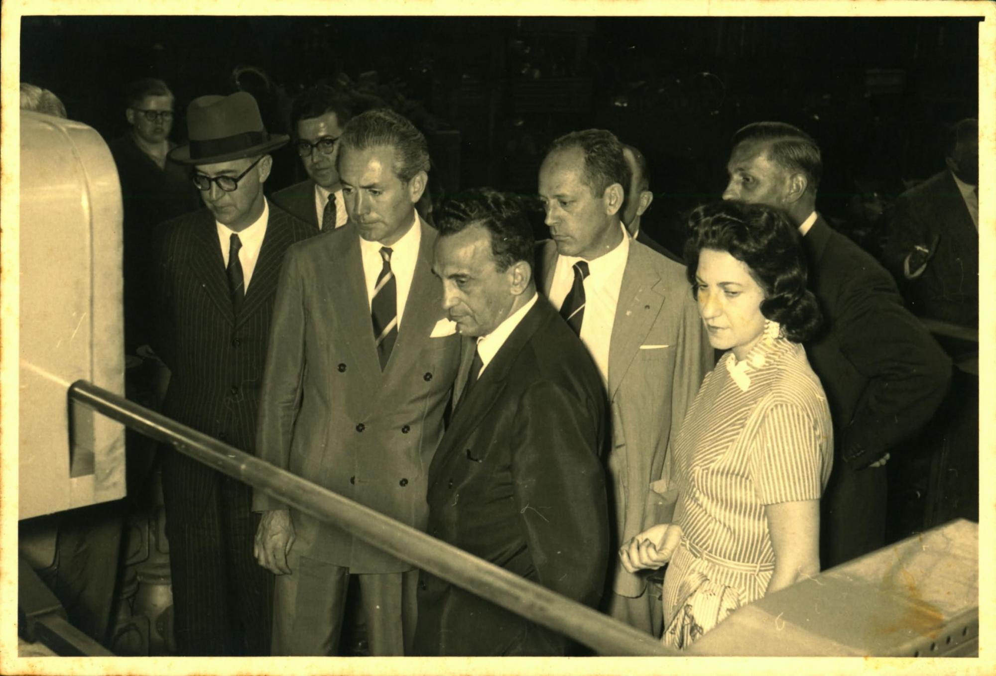 | Descrio:: | VISITA DA DELEGAO BRASILEIRA A UMA INDSTRIA: DA ESQUERDA PARA A DIREITA, JOO KUBITSCHEK DE FIGUEIREDO, DE CHAPU, DERMEVAL JOS PIMENTA, DE TERNO ESCURO E, LOGO ATRS DESTE, PAULO MACEDO GONTIJO OBSERVANDO O FUNCIONAMENTO DE UMA MQUINA. |