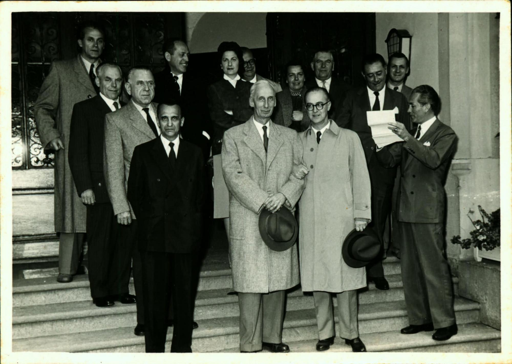 | Descrio:: | INTEGRANTES DA DELEGAO BRASILEIRA DURANTE VISITA A UMA INDSTRIA: EM PRIMEIRO PLANO, DERMEVAL JOS PIMENTA, ESQUERDA, E JOO KUBITSCHEK DE FIGUEIREDO, DE CULOS; EM SEGUNDO PLANO, FRITZ REPPCHEN, ESQUERDA, E LDIO LUNARDI, DIREITA; AO FUNDO, PAULO MACEDO GONTIJO, DE SOBRETUDO ESCURO PRXIMO PORTA. |