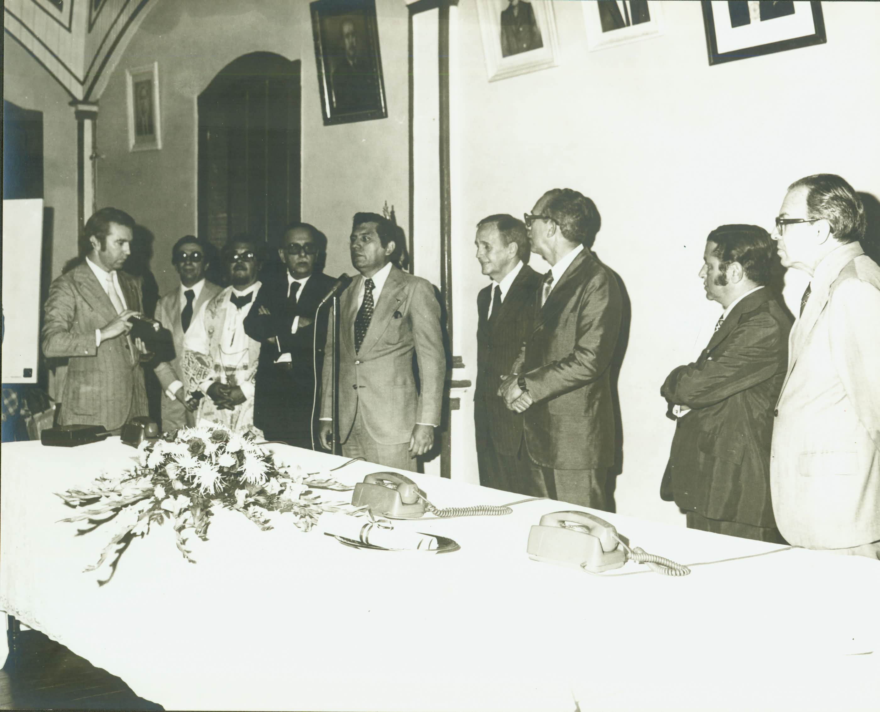 | Notas: | NOTAS: CONCEIO DO MATO DENTRO 03/12/1976. INAUGURAO DO SISTEMA TELEFNICO 03/12/1976. (VERSO)APARECEM: ROBERTO TEIXEIRA DA SILVA (DE TERNO CLARO E GRAVATA ESCURA, DE CULOS), FREI LAUDELINO GERALDO DE OLIVEIRA, JOS APARECIDO DE OLIVEIRA, SECRETRIO FERNANDES FAGUNDES NETO, BRIGADEIRO THEOBALDO KOPP, GENERAL JOS ANTNIO DE ALENCASTRO E SILVA, PREFEITO BRUNO PIRES CARNEIRO E JOO CAMILO PENNA (PRESIDENTE DA CEMIG). |