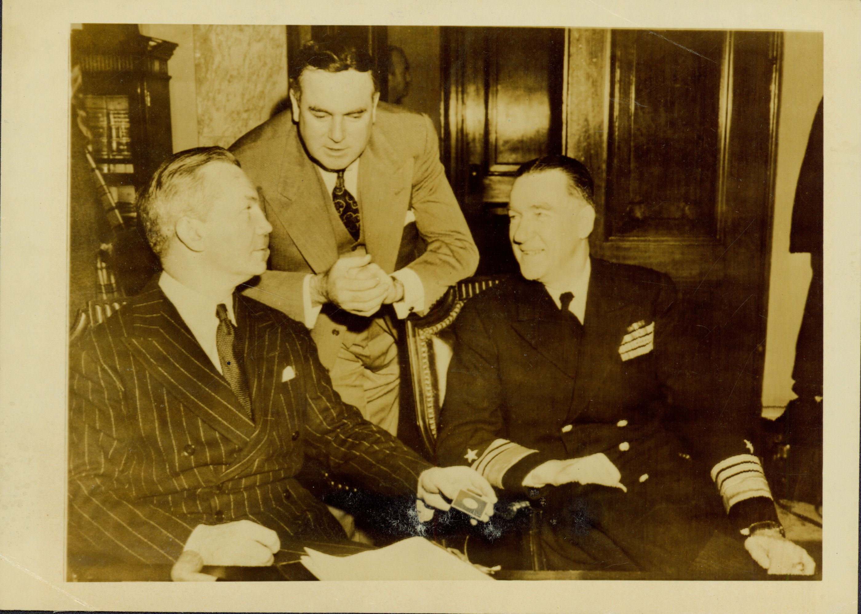 | Notas: | => SECRETRIO DA MARINHA JAMES FORRESTAL (ESQUERDA) E O ALMIRANTE BLANDY ASSISTENTE CHEFE DAS OPERAES NAVAIS, FOTOGRAFADOS JUNTOS AO SENADOR BRIEN MC MAHON DE CONECTICUT, PRESIDENTE DO COMIT ATMICO PARA O SENADO, FLORESTAL CRITICOU ASPERAMENTE A PROPO |