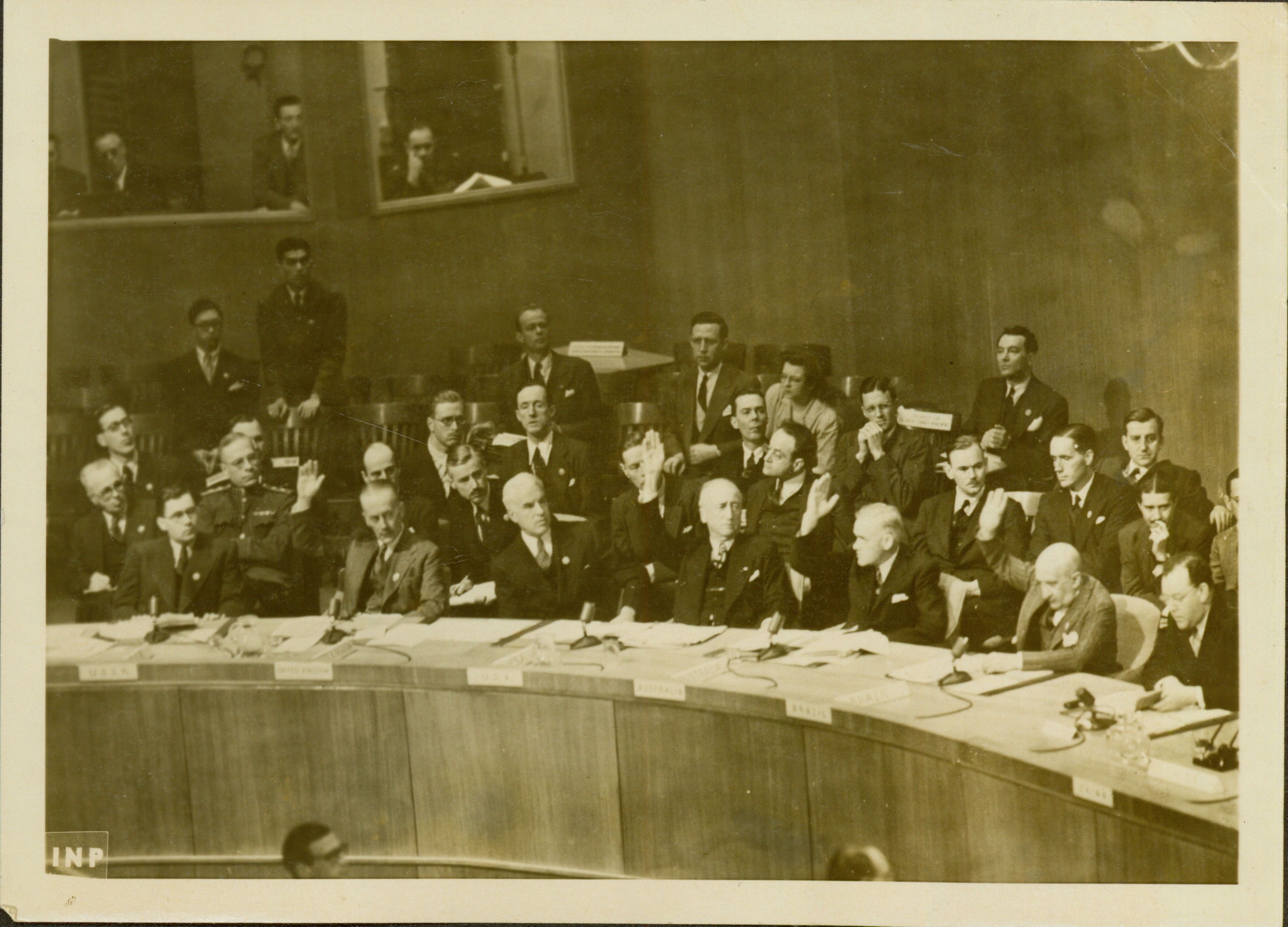 | Notas: | => CENA MOSTRANDO A VOTAO TUMULTUADA DO CONSELHO DE SEGURANA DA ONU, SOBRE A QUESTO RUSSO IRANIANA, EM QUE O CONSELHO RECONHECEU A DISPUTA COMO RESOLVIDA A FAVOR DO IR. APARECEM VOTANDO (DA ESQUERDA PARA A DIREITA), ANDREY GROMIKO DA UNIO SOVITICA, |