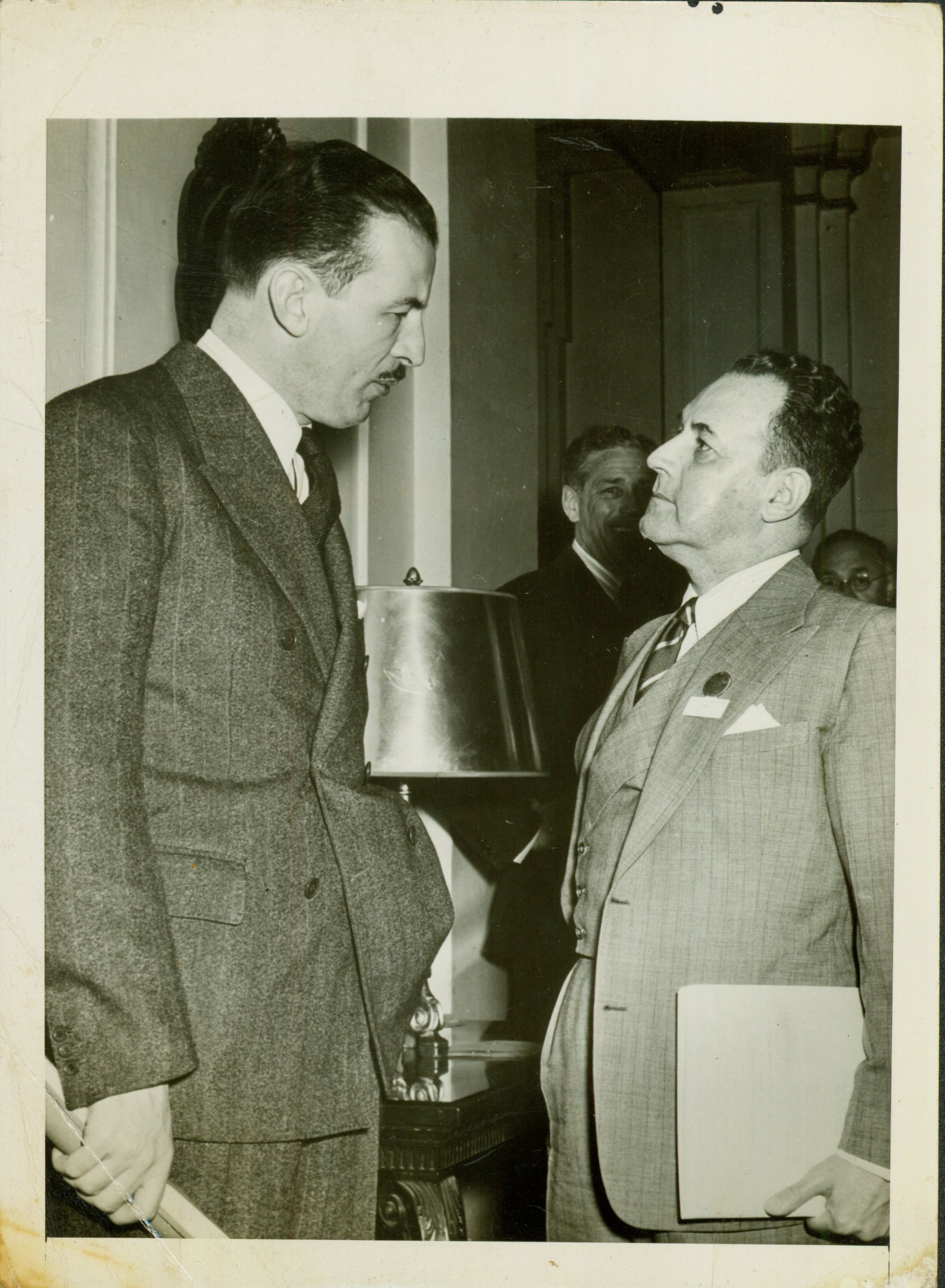| Notas: | => BRIGADEIRO IVAN CARPENTER FERREIRA CHEFE DA DELEGAO BRASILEIRA ESQUERDA E O MAJOR GENERAL LAWRENCE S. KUTER, REPRESENTANTE PERMANENTE DO GOVERNO AMERICANO NA ASSEMBLIA DA ORGANIZAO INTERNACIONAL DA AVIAO CIVIL. |
