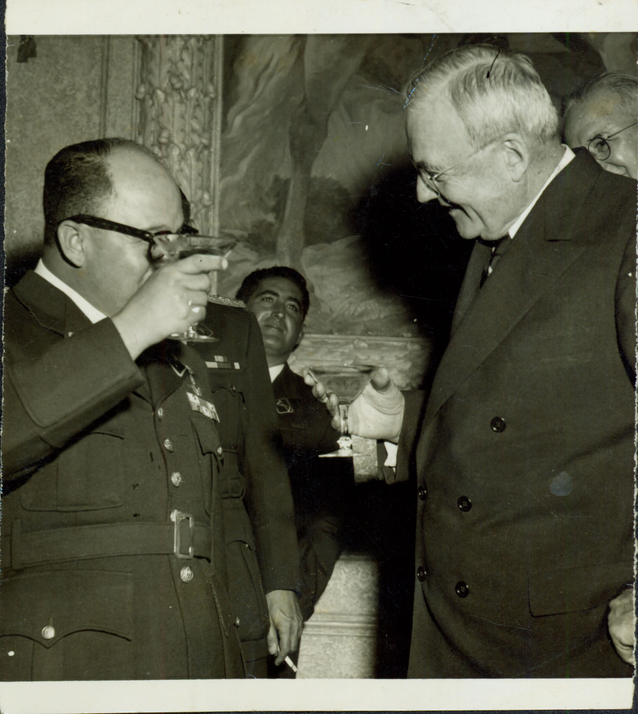 | Notas: | => RECEPO NO PALCIO MIRAFLORES EM QUE O PRESIDENTE DA VENEZUELA, MARCOS PEREZ JIMENES (ESQUERDA) BRINDA O SECRETRIO DE ESTADO DOS ESTADOS UNIDOS JOHN FOSTER DULLES COM UMA TAA DE CHAMPANHA. A RECEPO FOI DADA EM HOMENAGEM S DELEGAES QUE COMPARECE |