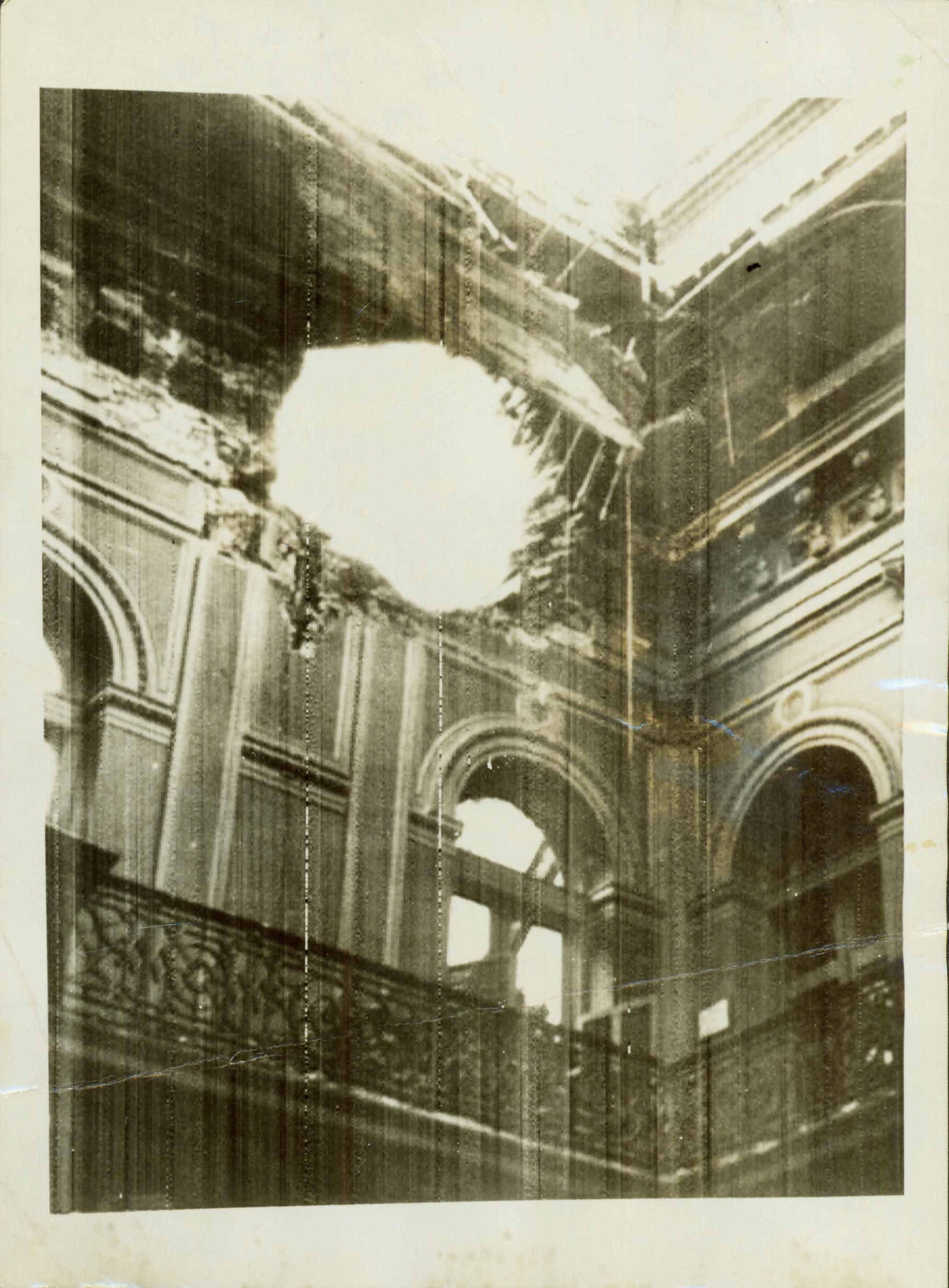 | Notas: | ANOTAES: A BOMBA DESTRUIU A SALA DE RECEPO DE PERON, JUNHO DE1955. (VERSO) => BOMBARDEIO DA CASA ROSADA. A BOMBA DESTRUIU A SALA DE RECEPO DE PERON. AQUI APARECE O BURACO FEITO NA PAREDE DA SALA DO PALCIO GOVERNAMENTAL. NOTCIAS INDICAM QUE O MINISTRO DA GUERRA, GENERAL FRANKLIN UCERO COMO O NOVO HOMEM DA ARGENTINA. => SUPORTE PRIMRIO: 17,7 X 12,9 CM. |
