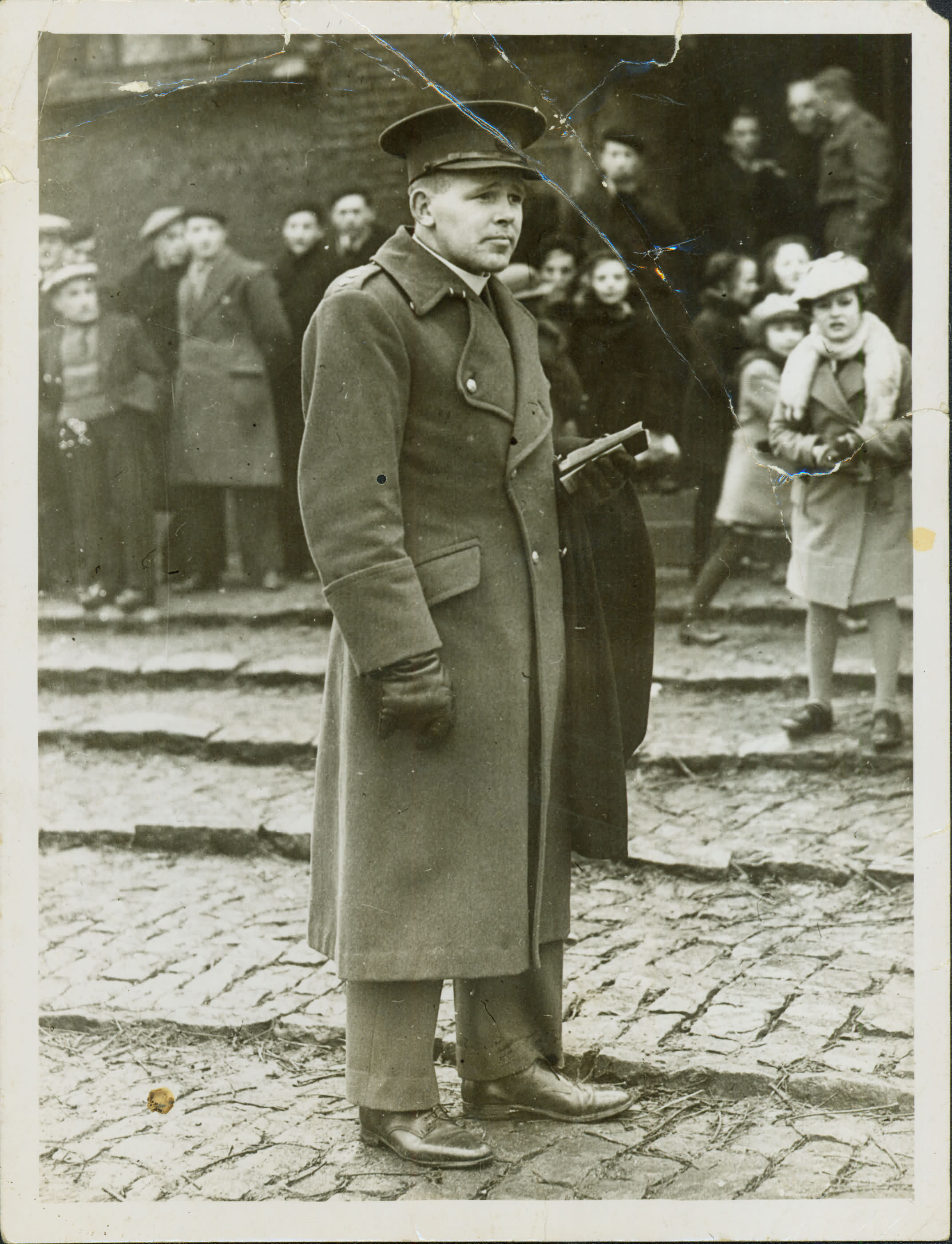 | Notas: | => O CAPITO REVERENDO BRISBANE DOS FUZILEIROS REAIS DA IRLANDA ASSIATE A PARADA DA IGREJA CATLICA ROMANA E SERVINDO A UMA PEQUENA IGREJA, EM ALGUM LUGAR DA FRANA. RECORTE DE JORNAL. |