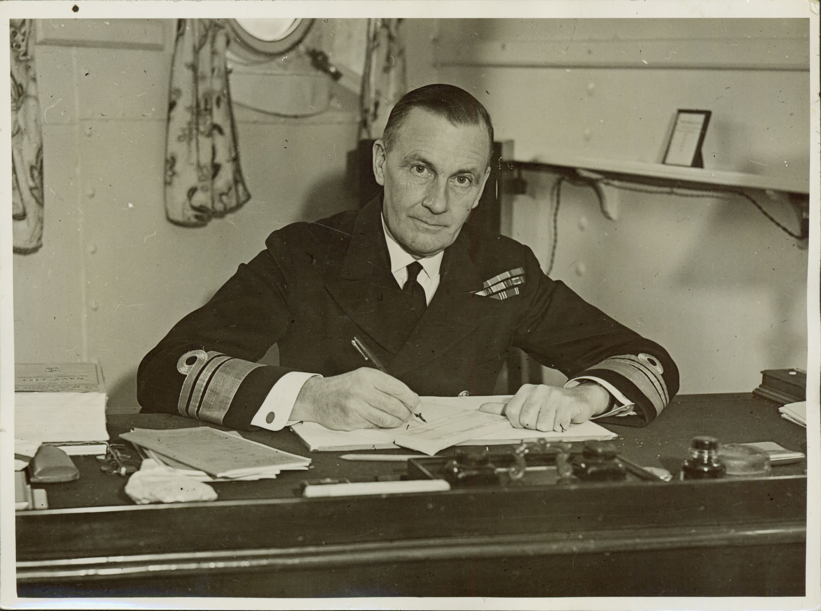| Notas: | =>ALMIRANTE SIR JAMES SOMERVILLE, DA MARINHA BRITNICA, QUANDO TRABALHAVA EM SUA CABINE NO NAVIO CAPITNIA. RECORTE DE JORNAL. |