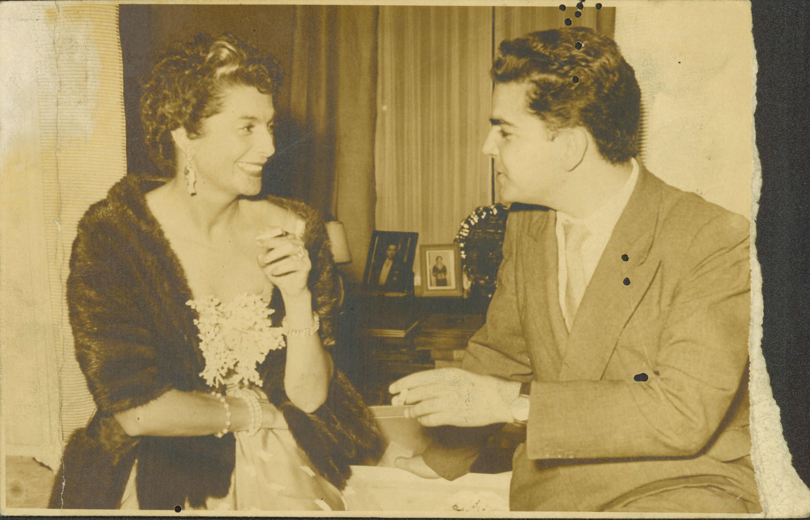 | Notas: | => O SENHOR MAURO BORJALO CONVERSANDO ALEGREMENTE COM UMA SENHORA.=> BORJALO EM COMPANHIA DE UMA SENHORITA NO IDENTIFICADA, SENTADOS LADO A LADO, SORRINDO UM PARA O OUTRO, EM CONVERSA.=>FOTO DANIFICADA. |
