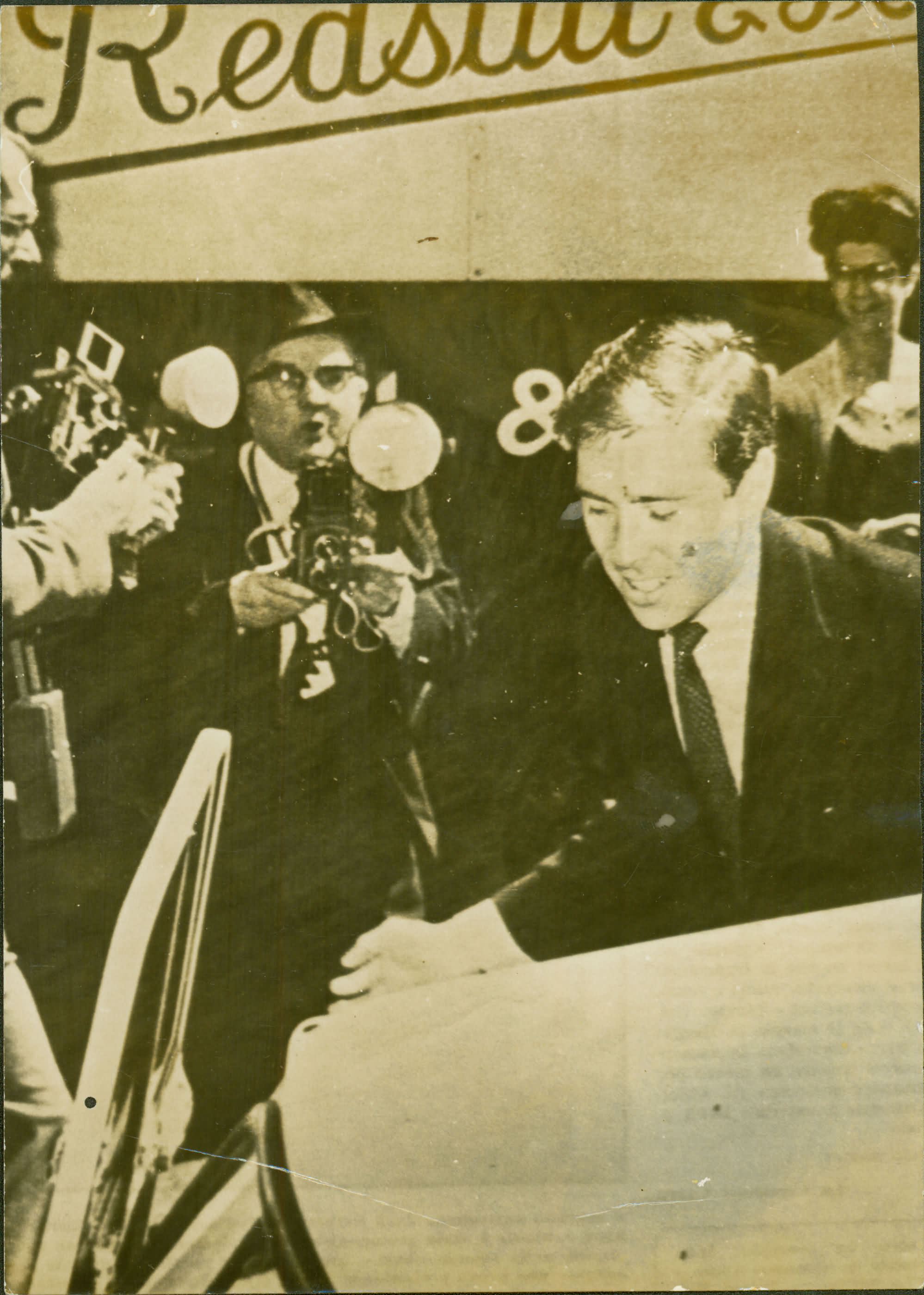 [ARMSTRONG JONES ENTRANDO EM AUTOMVEL ACOMPANHADO POR FOTGRAFOS]