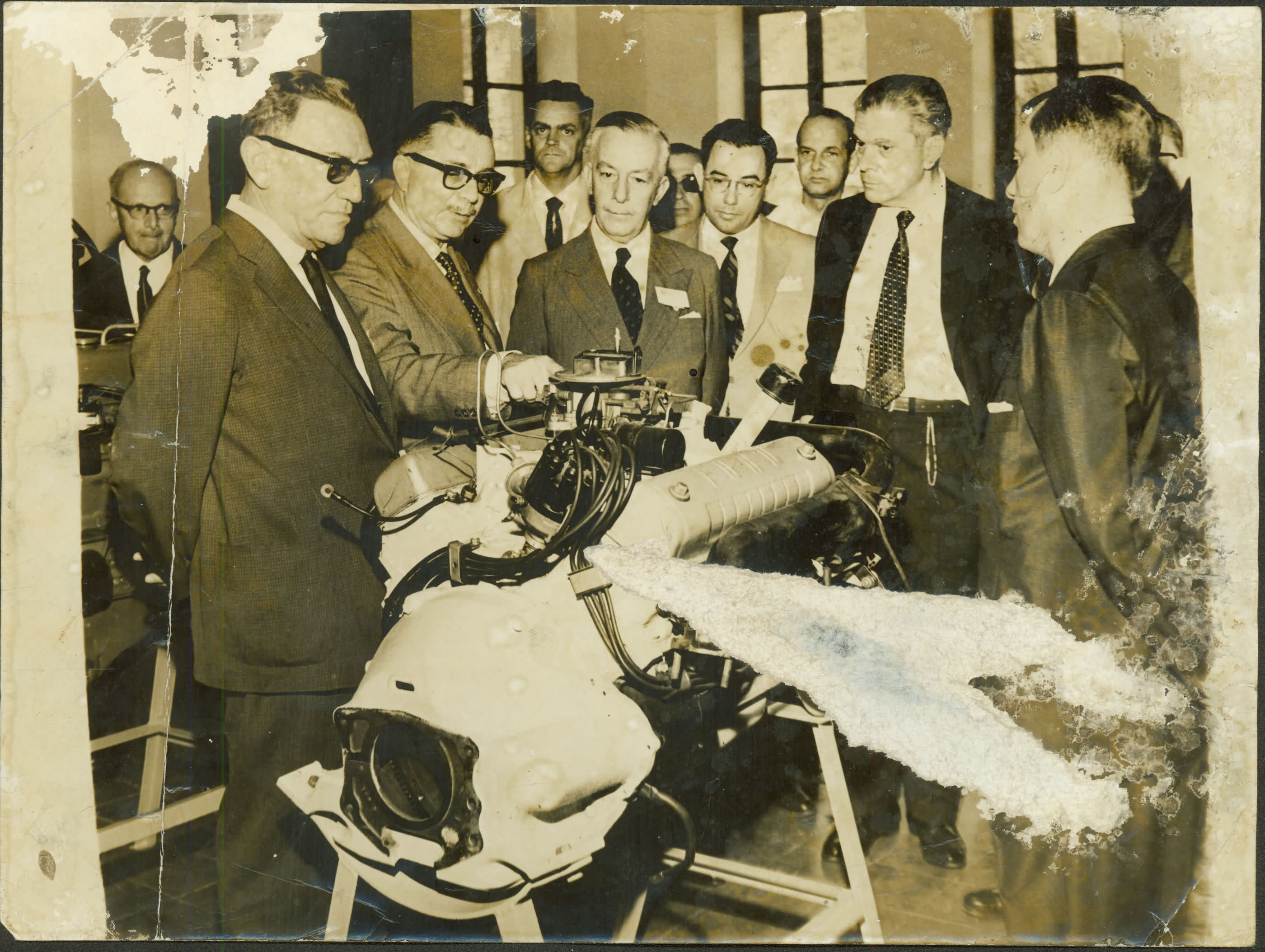 | Notas: | => LAURO DE BARROS STEFFANO, GERENTE DE ASSUNTOS INSTITUCIONAIS DA FORD MOTOR DO BRASIL S/A LADEADO POR PEDRO CALMOM, REITOR DA UNIVERSIDADE DE MINAS, SALATHIEL TORRES, VICENTE ASSUNO E OUTROS POR OCASIO DA DOAO DE MOTOR FORD BRASILEIRO UNIVERSIDAD |
