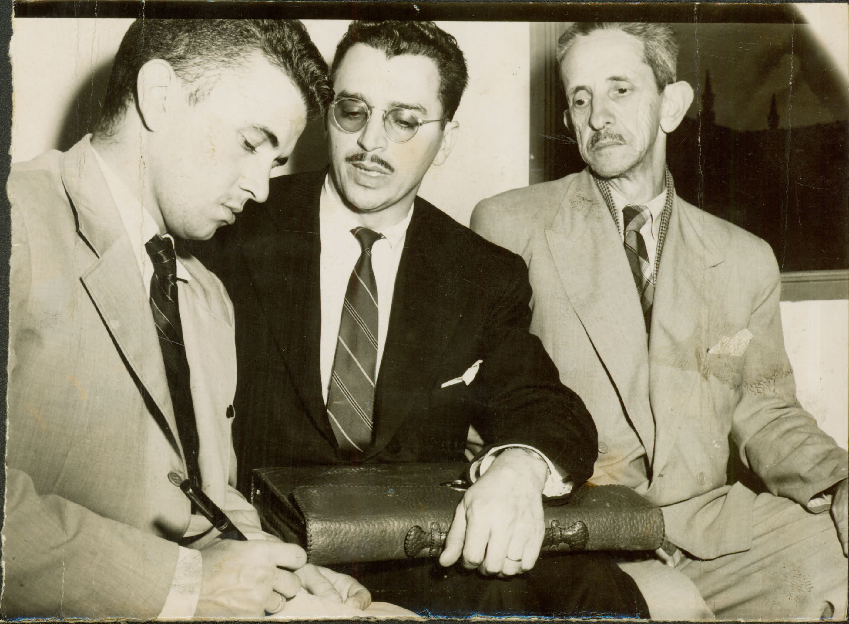 | Notas: | ANOTAES: RAIMUNDO NONATO LOPES, ADVOGADO DO SINDICATO DOS TRABALHADORES CARRIS URBANOS DE JUIZ DE FORA, ACOMPANHADOS DO SR. ALTINO GOMES DA SILVA. (VERSO) =>FOTO DANIFICADA. |