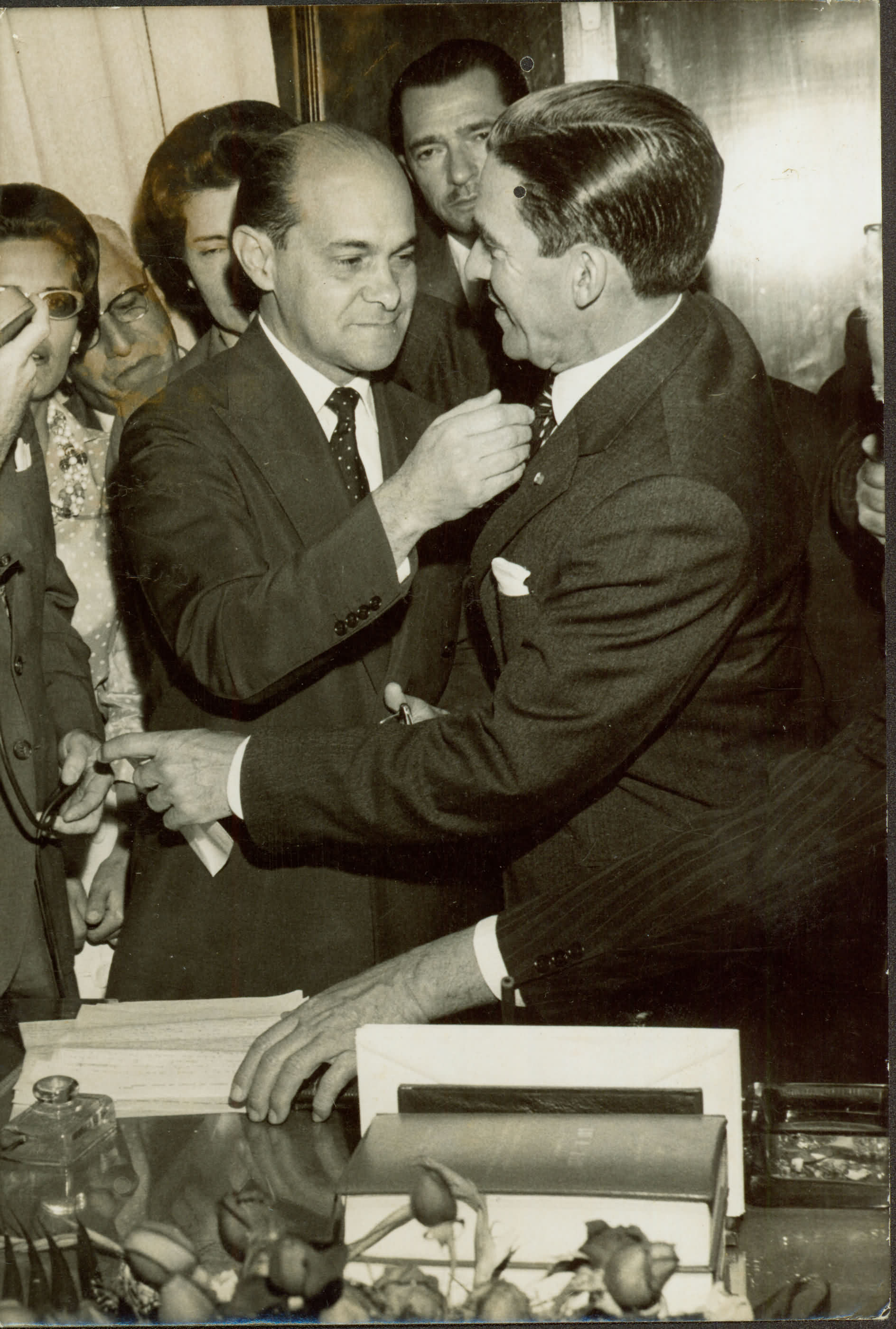 [TANCREDO NEVES COM OUTRO EM SOLENIDADE]