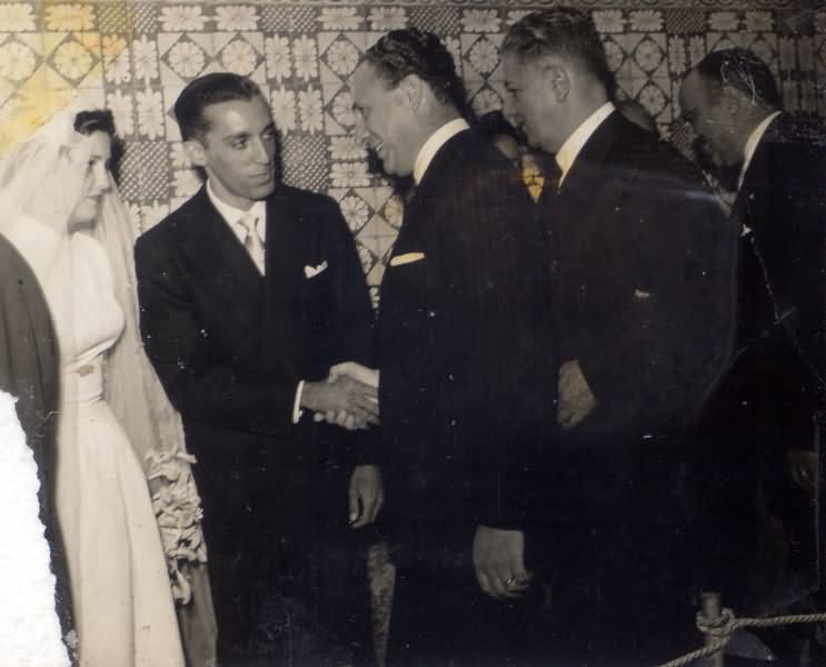 [BENEDITO VALADARES E OUTROS CONVIDADOS CUMPRIMENTANDO OS NOIVOS DURANTE O CASAMENTO DE MARIA ELISA PINHEIRO E BENJAMIN JACOB]