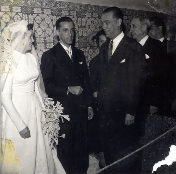 [MARIA ELISA PINHEIRO, BENJAMIN JACOB, JUSCELINO KUBITSCHEK E OUTROS DURANTE RECEPO DE CASAMENTO]