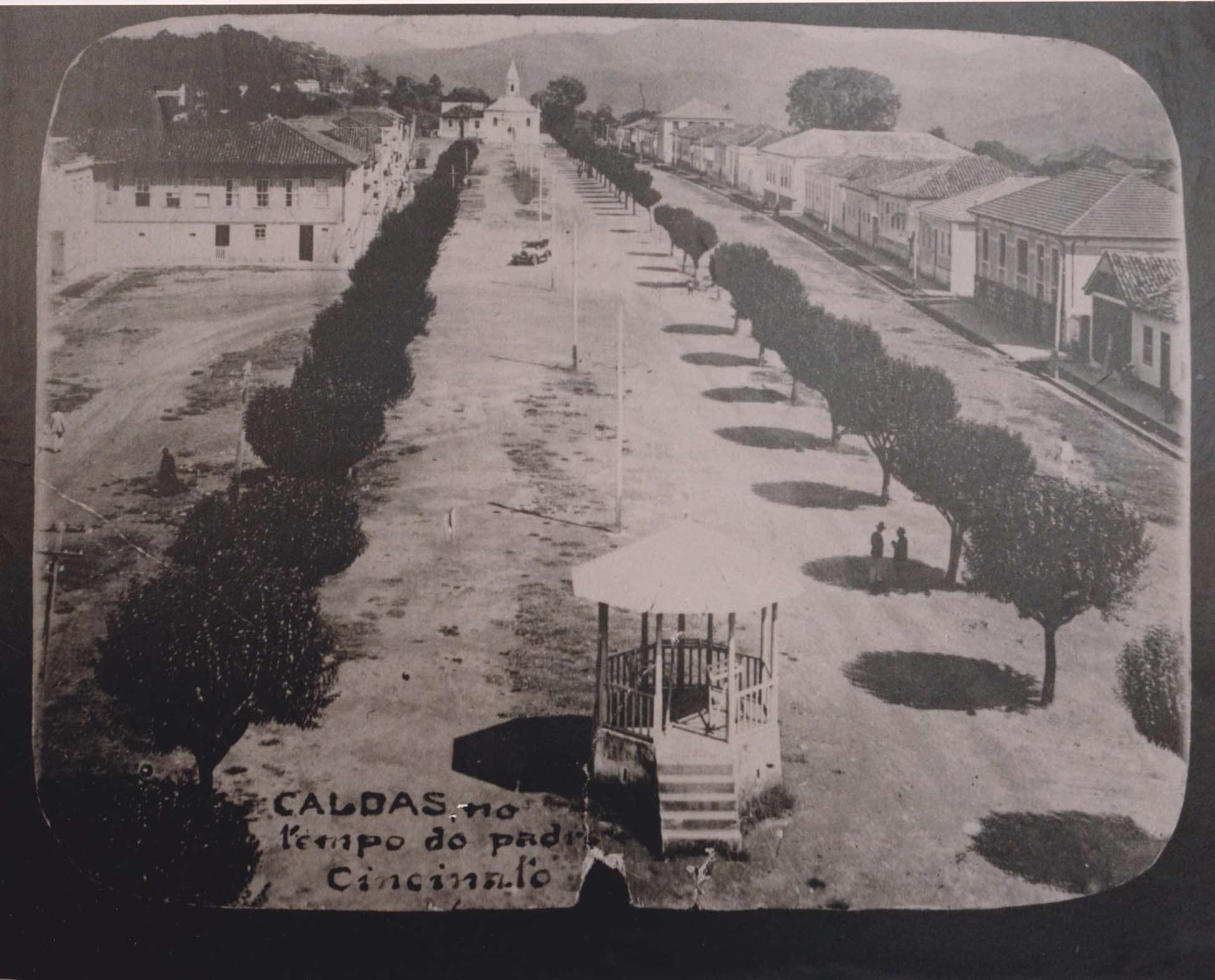 ANOTAES: "FOTOGRAFIA TIRADA NA PRAA CENTRAL DA CIDADE DE CALDAS-MG, NO ANO DE 1929, NO TEMPO DO PADRE CINCINATO BRAGA. ARQUIVO: NILSON LEMES, PARA DOAO ACAPM, EM BELO HORIZONTE." (VERSO)