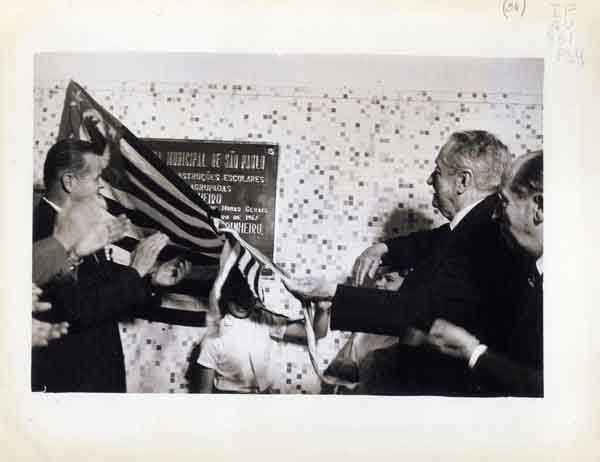 [DECERRAMENTO DE PLACA DURANTE INAUGURAO DAS ESCOLAS AGRUPADAS JOO PINHEIRO, EM SO PAULO]