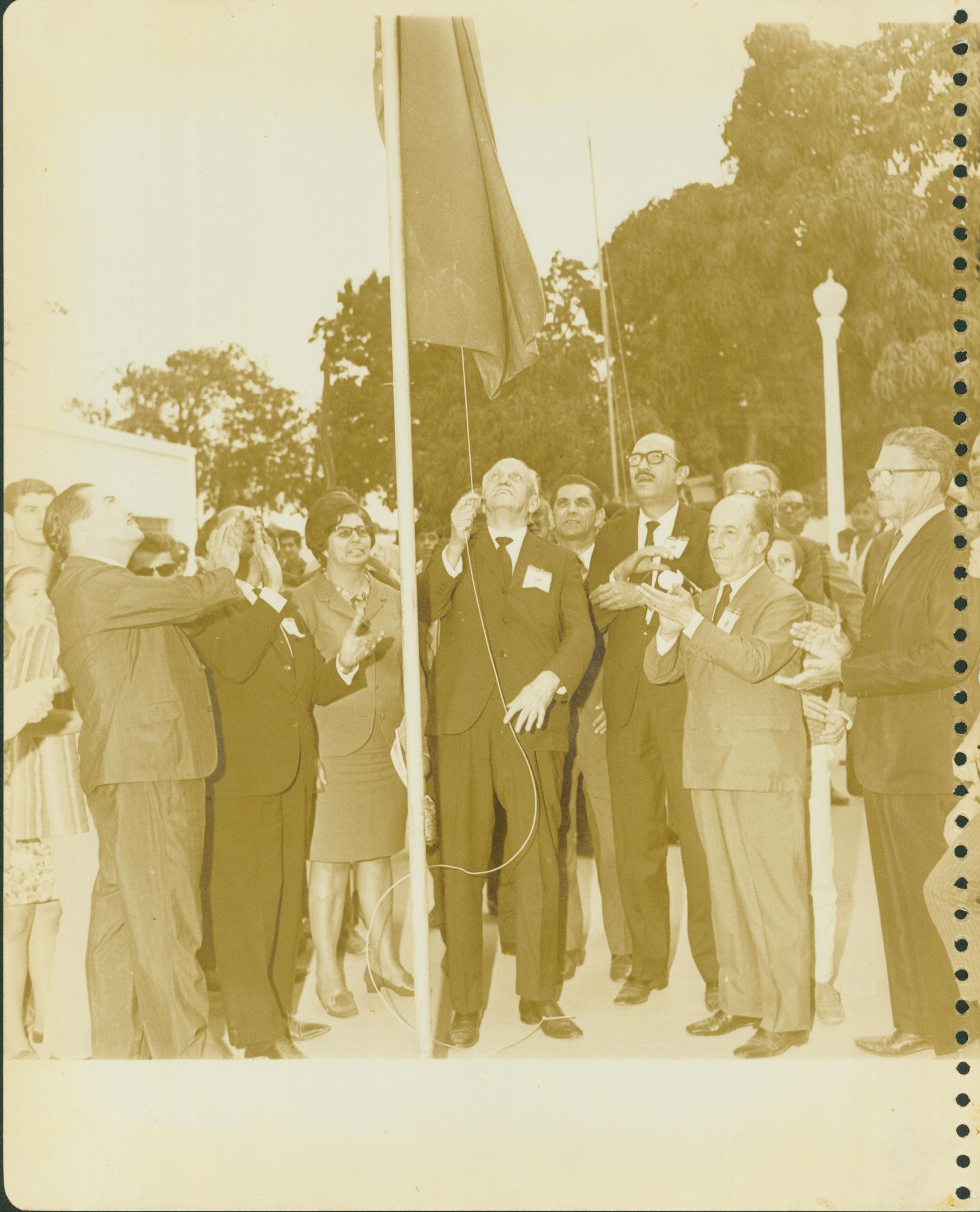 [GOVERNADOR ISRAEL PINHEIRO ENTRE AUTORIDADES HASTEANDO A BANDEIRA NACIONAL]